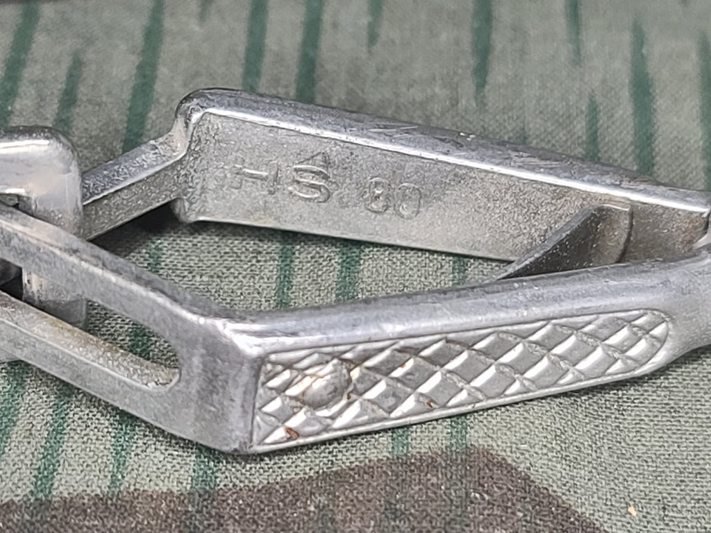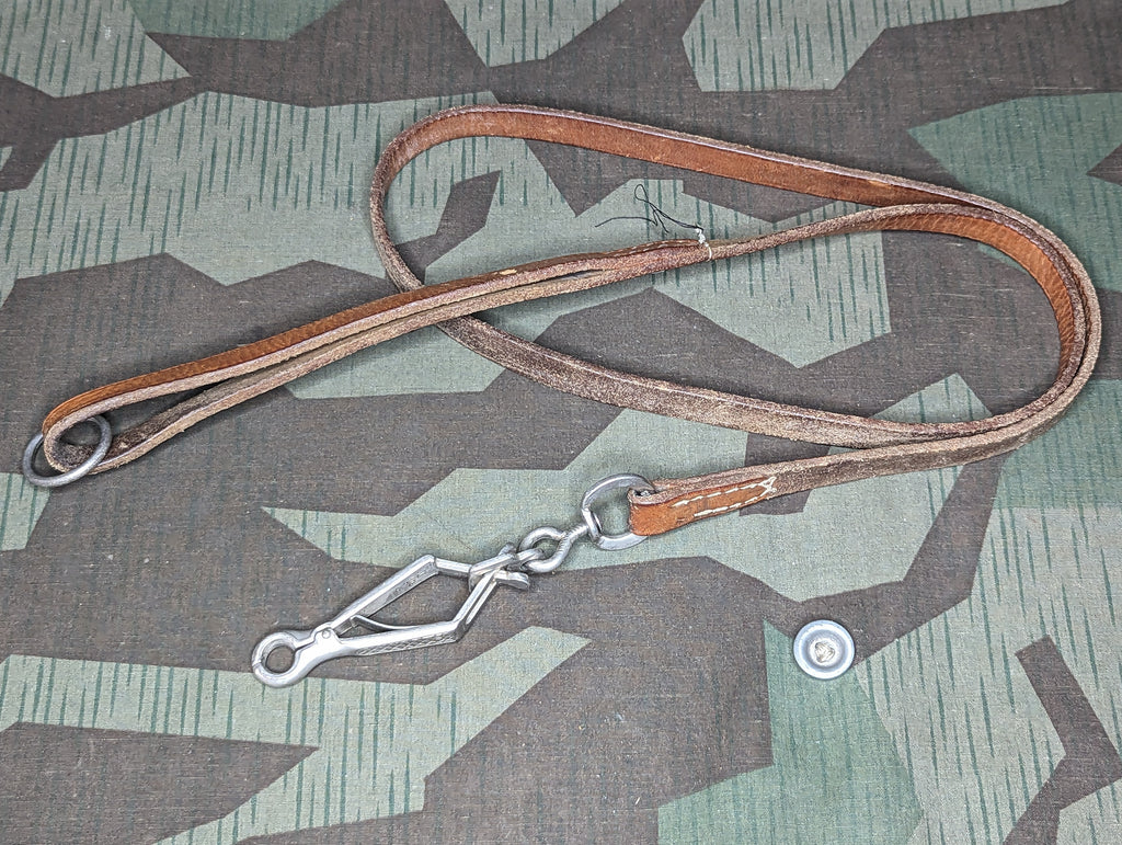 Nice period German dog leash in usable condition. It appears to have been restitched on one end with fishing line. It would be an easy project to redo the thread, especially since the holes are already there. - ← Previous Product Next Product →
