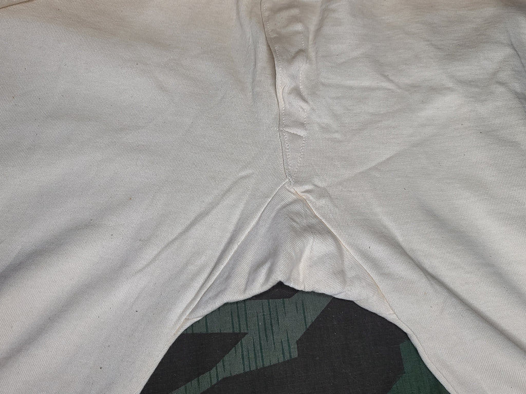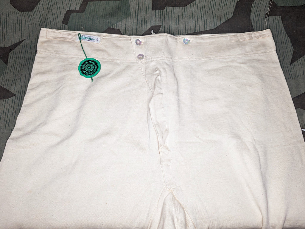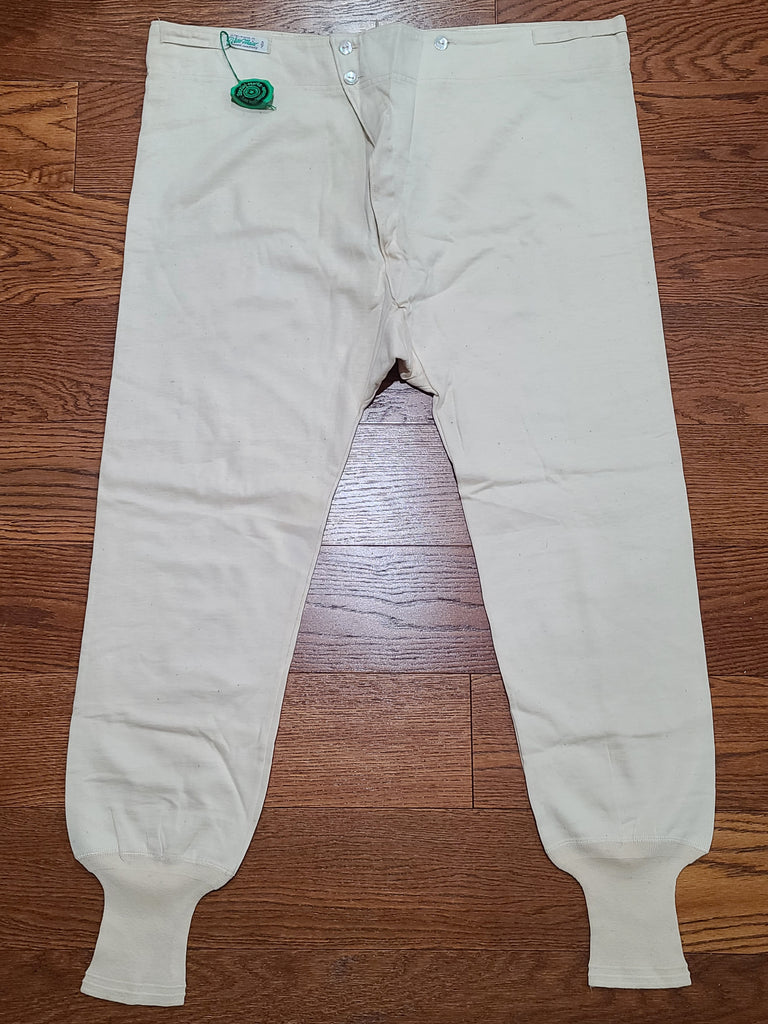 Period deadstock German long underwear with a 40"+ waist. Still has the original hanging tag. These are unworn, but they do have some storage wear and age spots. Basically brand new, just old. - ← Previous Product Next Product →