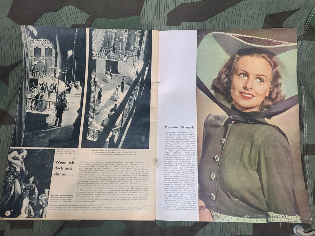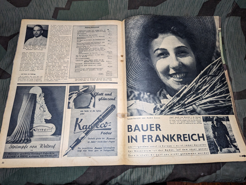 Very nice German language edition of Signal magazine from 1944 featuring a number of full color pages. The center most page has separated from the staples. This one does have several very good pictures in it. - ← Previous Product Next Product →