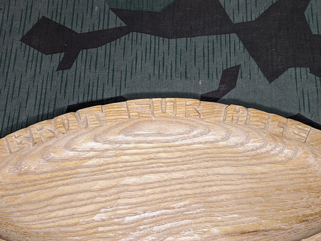 BROT FÜR ALLE TRÄGT DIE ERDE wooden German bread plate. More recently made but with a traditional style.