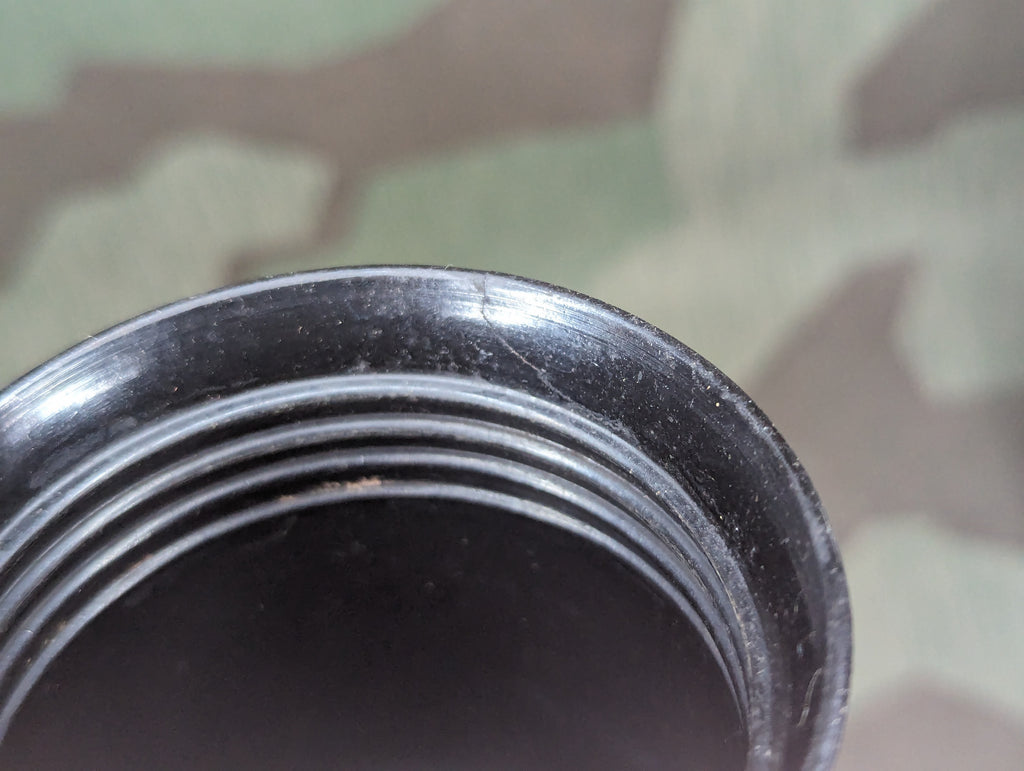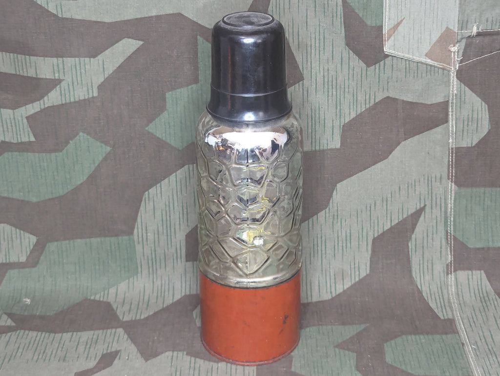 Period heavy duty thermos with a steel base and a Bakelite cup. Marked Camico. The Bakelite cup has a small crack on the edge, but the cup still feels quite stabile. It does need a good cleaning, but I would happily use this thermos. It is an all around solid usable piece. - ← Previous Product Next Product →