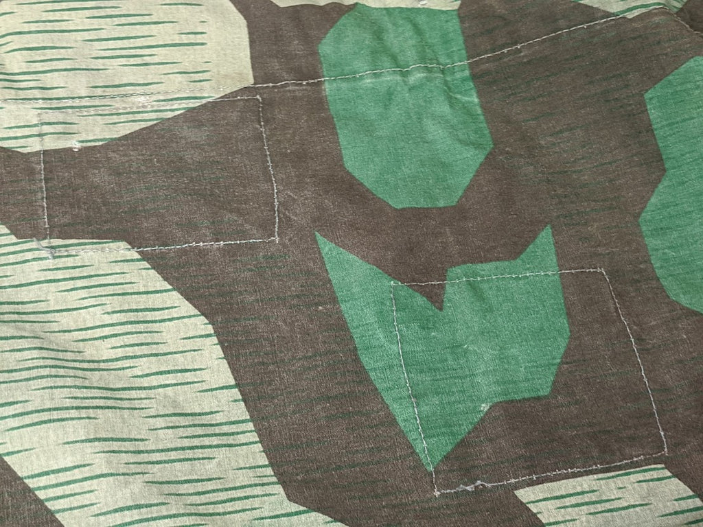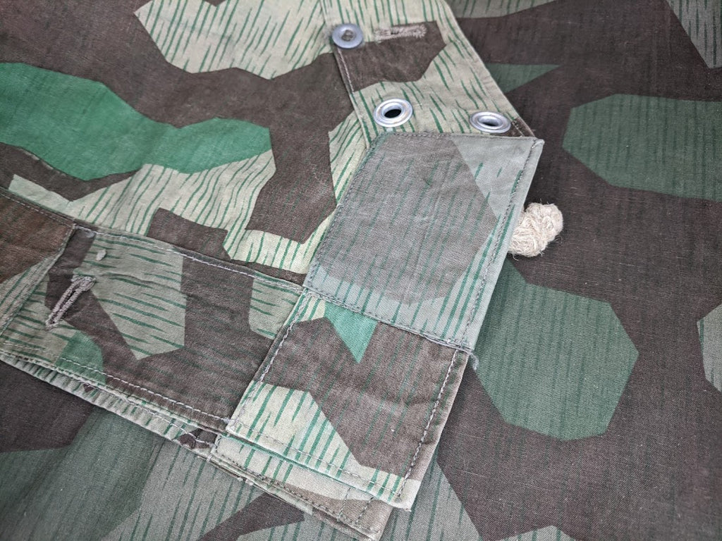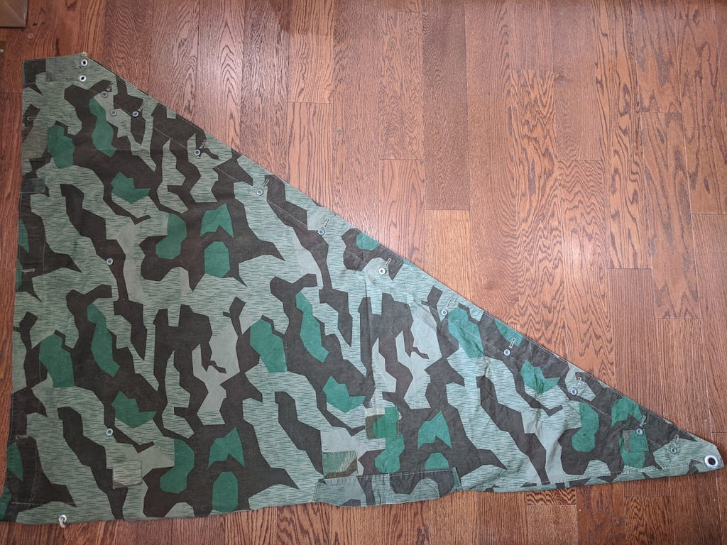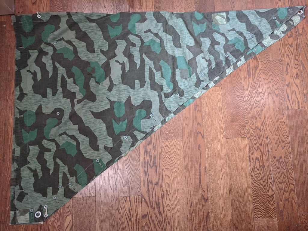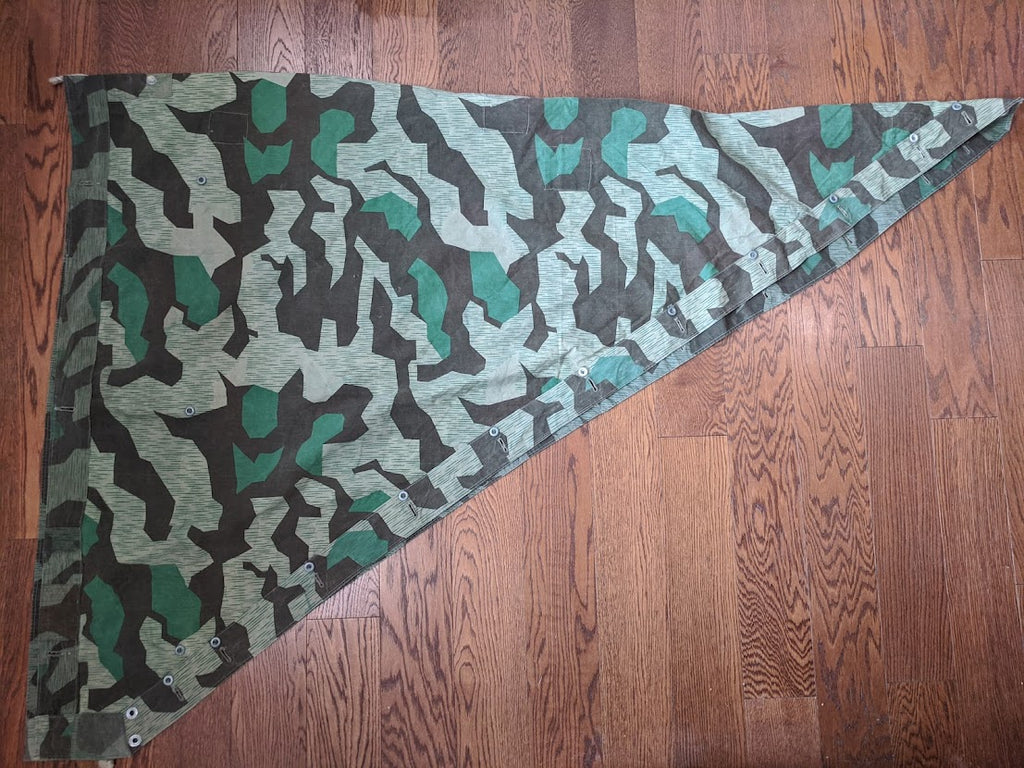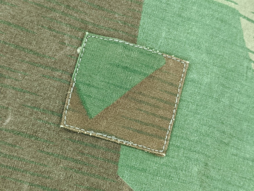 I do believe these repairs were done before this zeltbahn was ever issued. They are too well done and when you handle it you can just tell it was done in an industrial setting. One of the corner grommets was completely covered and omitted. This one may have never left the workshop; it might have been only partly finished.