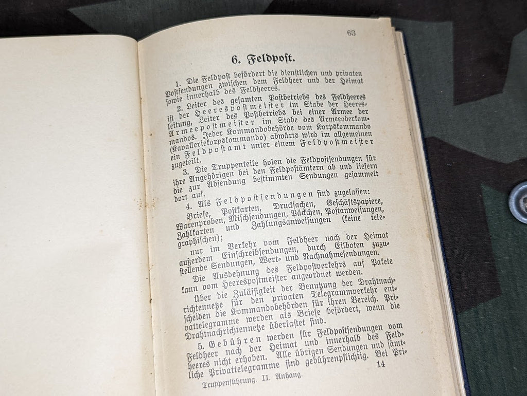 H. Dv. 300 Truppenfuhrung book from 1934. Great little book for reference with lots of diagrams. It is in rough condition and spineless. Still a good one to have just for the information inside. - ← Previous Product Next Product →