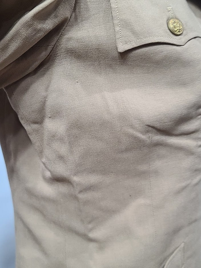 Vintage WWII WAC (Women's Army Corps) summer tropical worsted khaki uniform jacket. Dated 1944.
