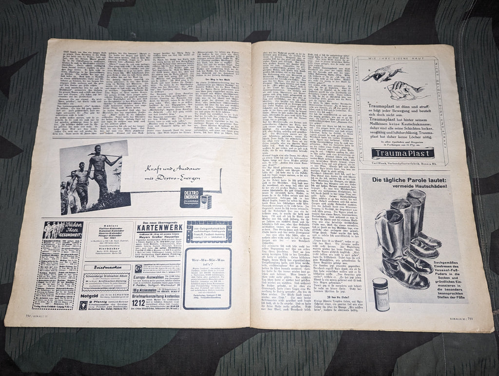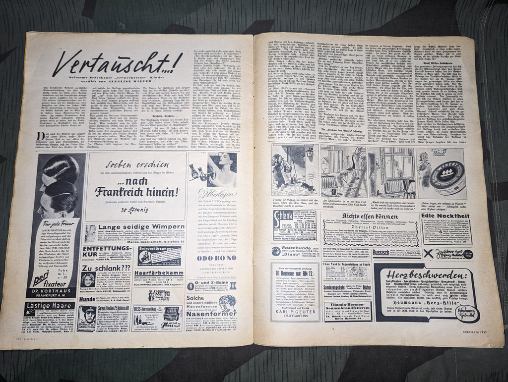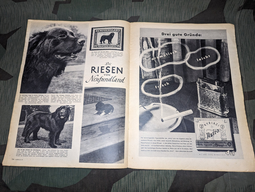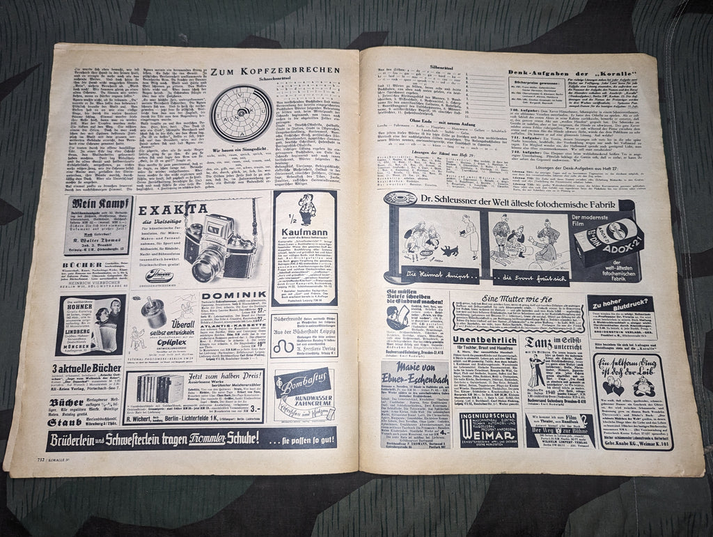 Original July 28 1940 Koralle magazine in decent condition. Lots of good ads in this one. This was a magazine for general entertainment with a verity of content. A nice alternative to the typical Signal magazines and a great way to introduce a more personal touch to a display. - ← Previous Product Next Product →