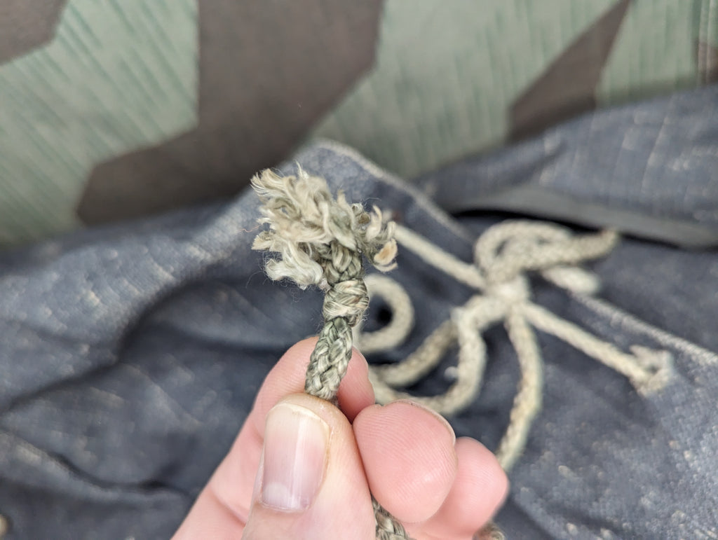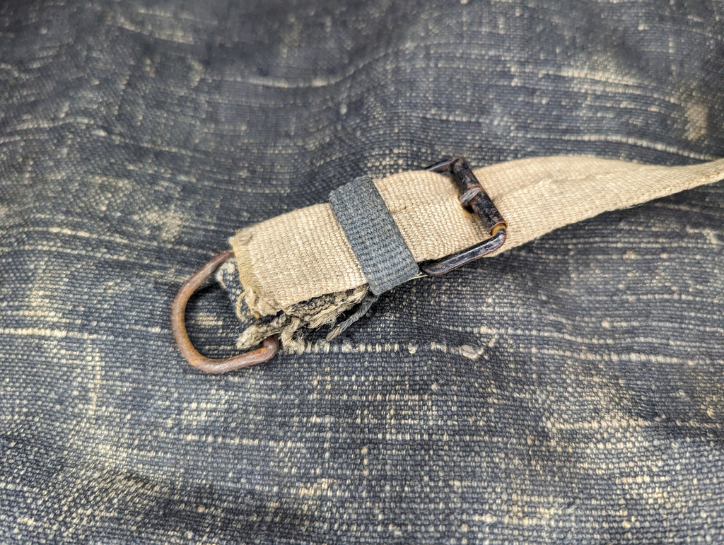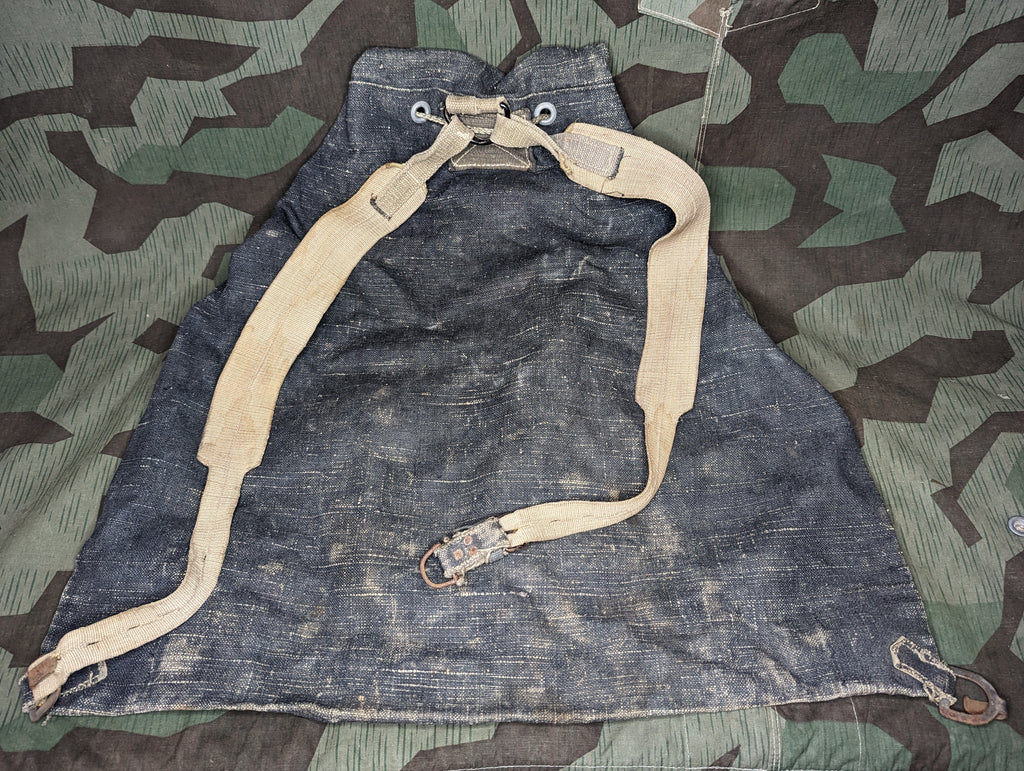 Very cool backpack made from various pieces of German military materials. Equipment canvas for the body, equipment hooks for attaching the straps, webbing, parachute cord for the drawstring. There is an East German lock stuck on the main buckle, I do not have the key for it. It just has a great and very unique look. - ← Previous Product Next Product →