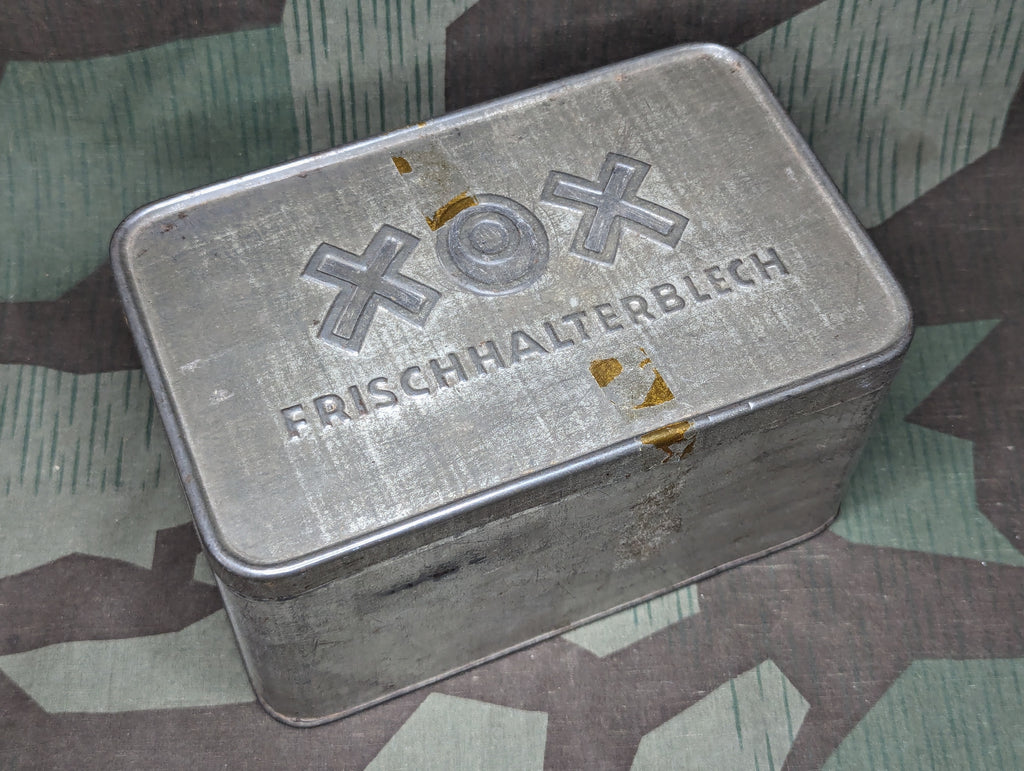 Early XOX frischhalterblech cookie tin. It is in fairly good condition, just showing its age a bit. Tape residue on the lid. - ← Previous Product Next Product →