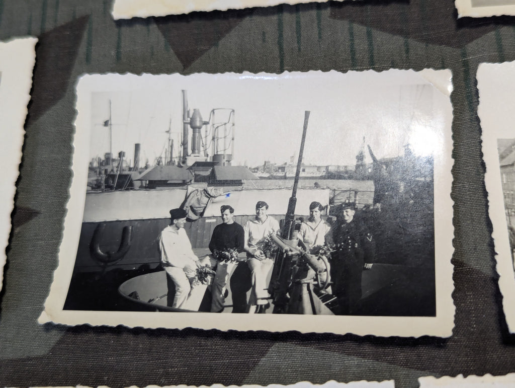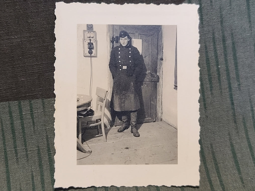 Lot of 7 photos from the same soldier. Five have writing on the back and are dated 1939-1940. Arbietsdienst and one in Versailles. One photos shows a lot of wear, one photo has some wear in a corner and the others are in good condition. Small blue pen mark on one photo, perhaps indicting who these pictures belonged to.