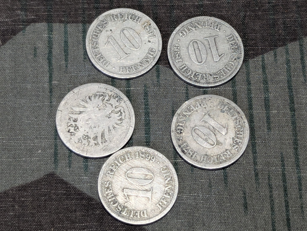 Lot of Five 10 Reichspfennig Coins 1874-1899