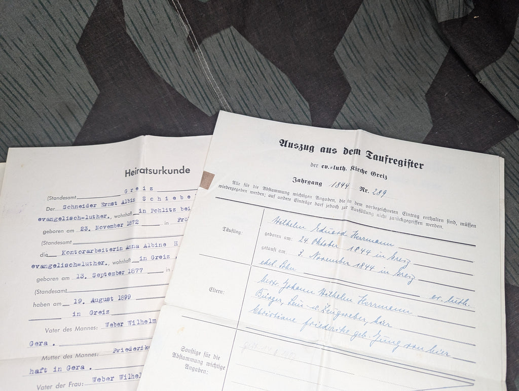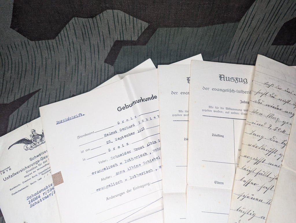 Original lot of various German papers including some newspapers. These all came together and appear to have been stored together by the original owner. You can possibly dig into them and figure out what connects them all. I believe it might be related to the wedding documents, which are part of the group.