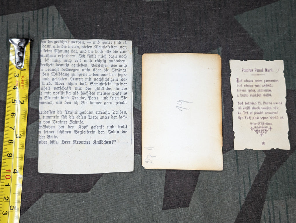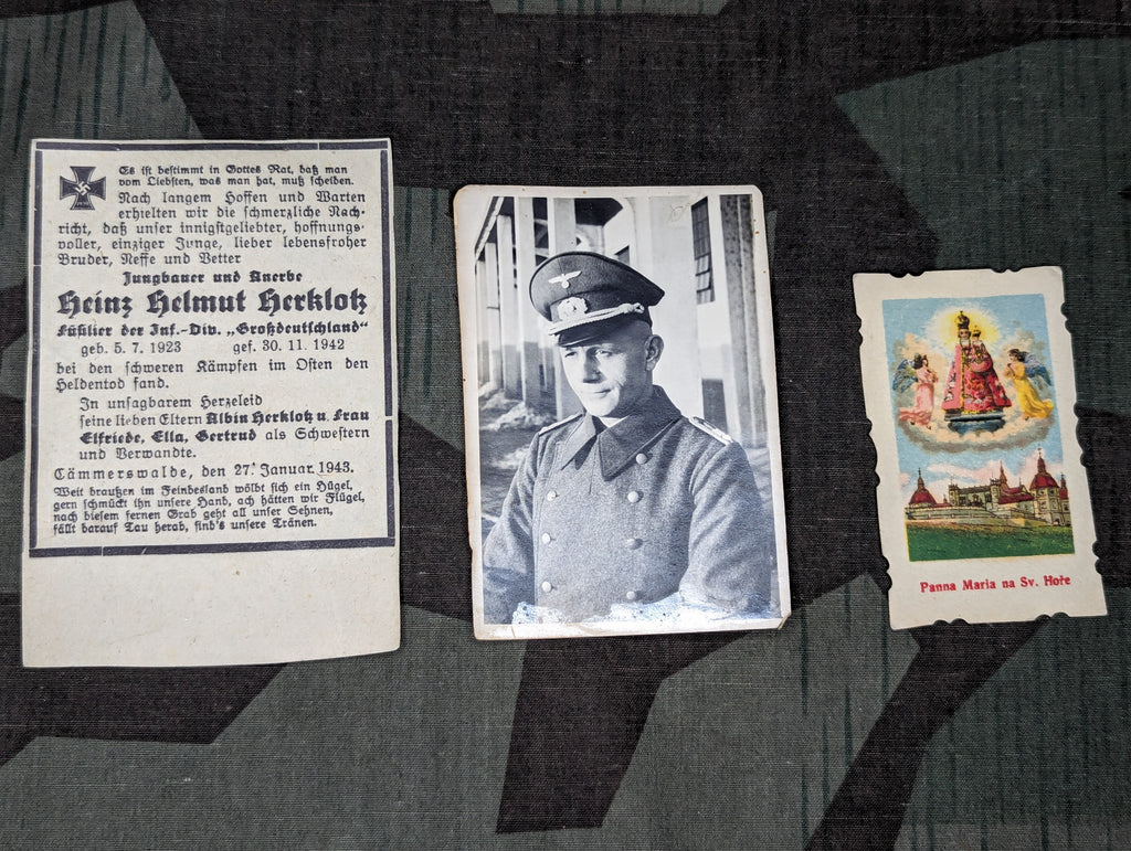 The photo and death notice were with the calendar books. I believe the photo is Werner and the death notice is from a fusilier of Großdeutschland who was killed on 30.11.1942 (perhaps a friend?). There is also a little prayer card. The death notice itself looks to have been cut from a newspaper.