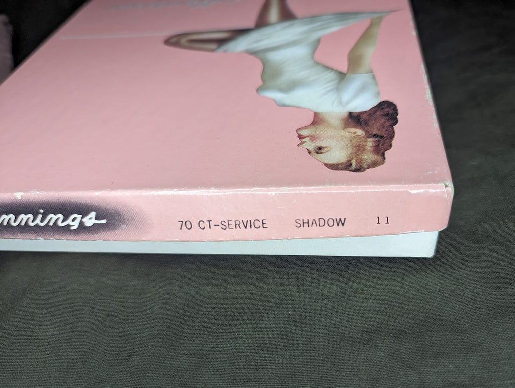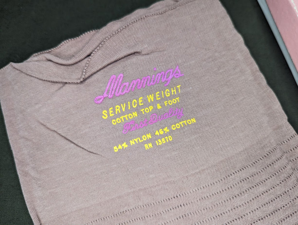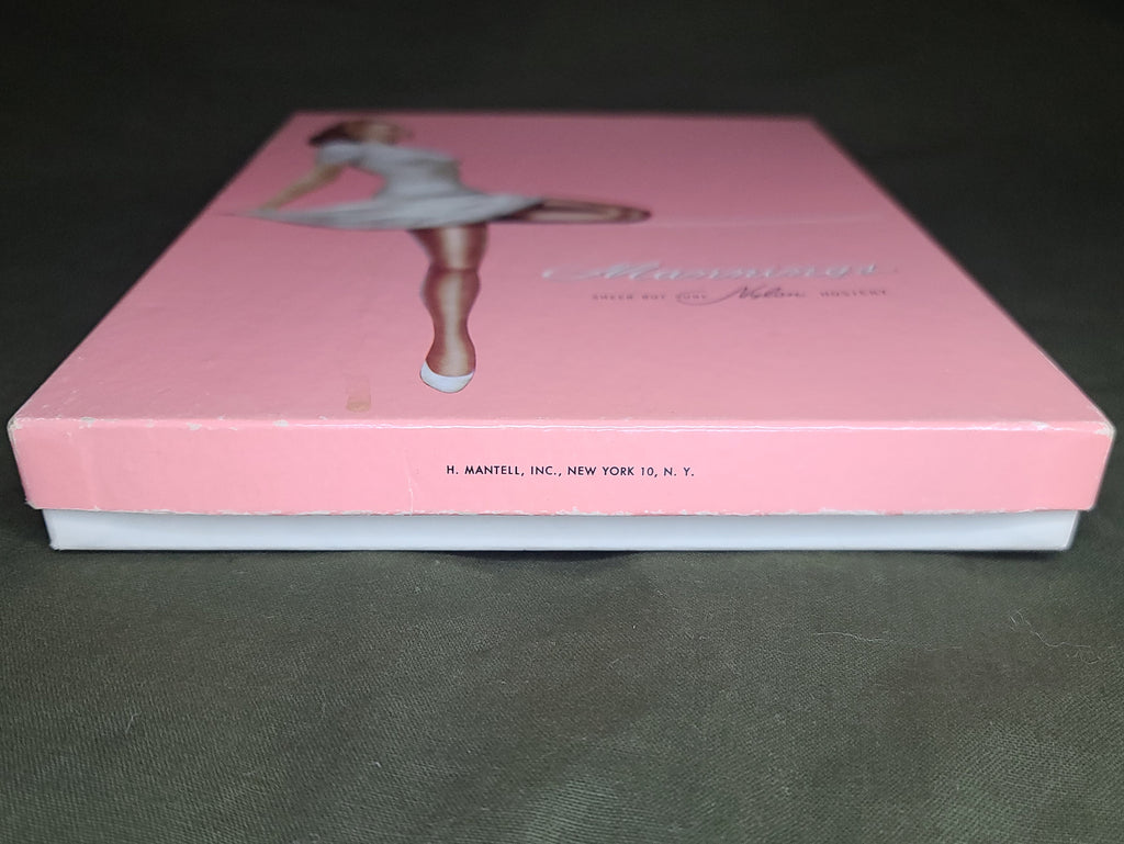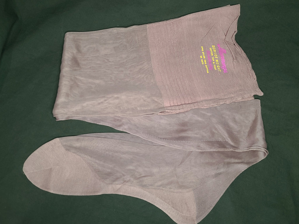Vintage Mannings seamed stockings in their original box. There is one pair of size 11 stockings. Stocking size refers to inches of the foot NOT shoe size. Stockings are in good, unworn condition. The box shows a little wear, but is still nice overall. - ← Previous Product Next Product →