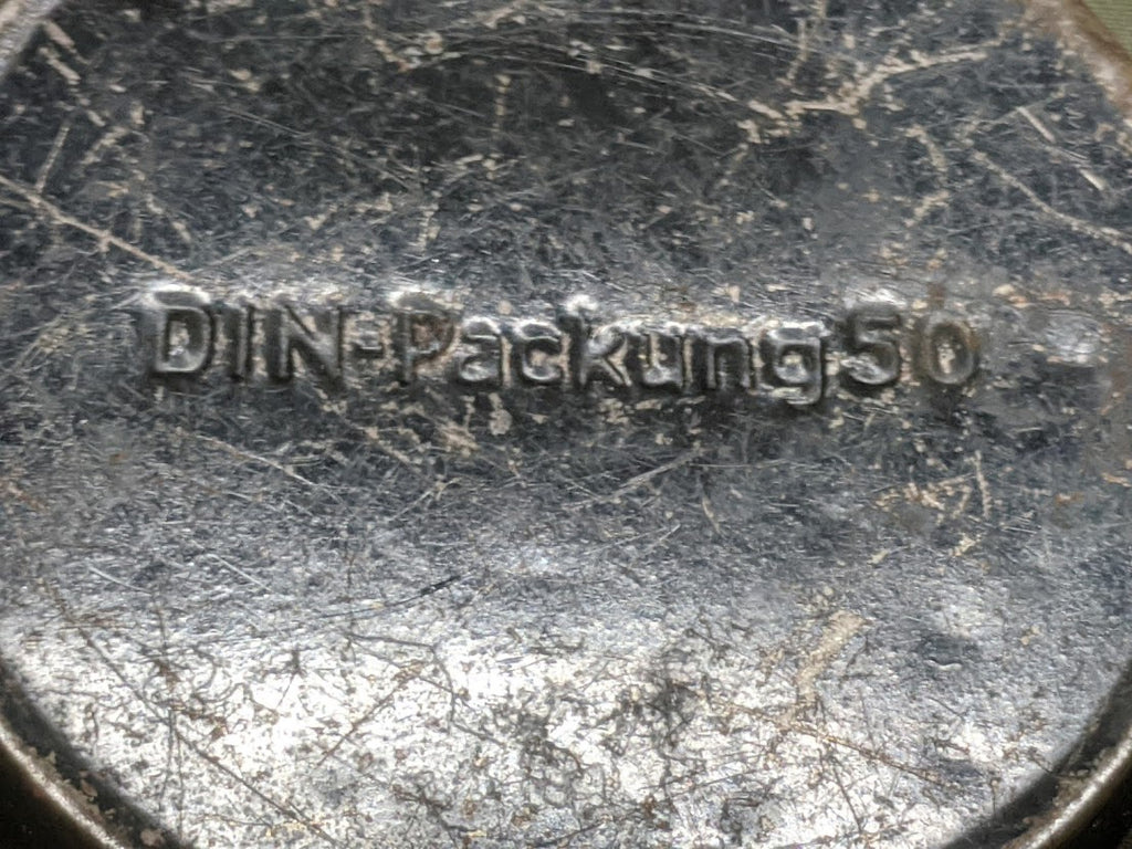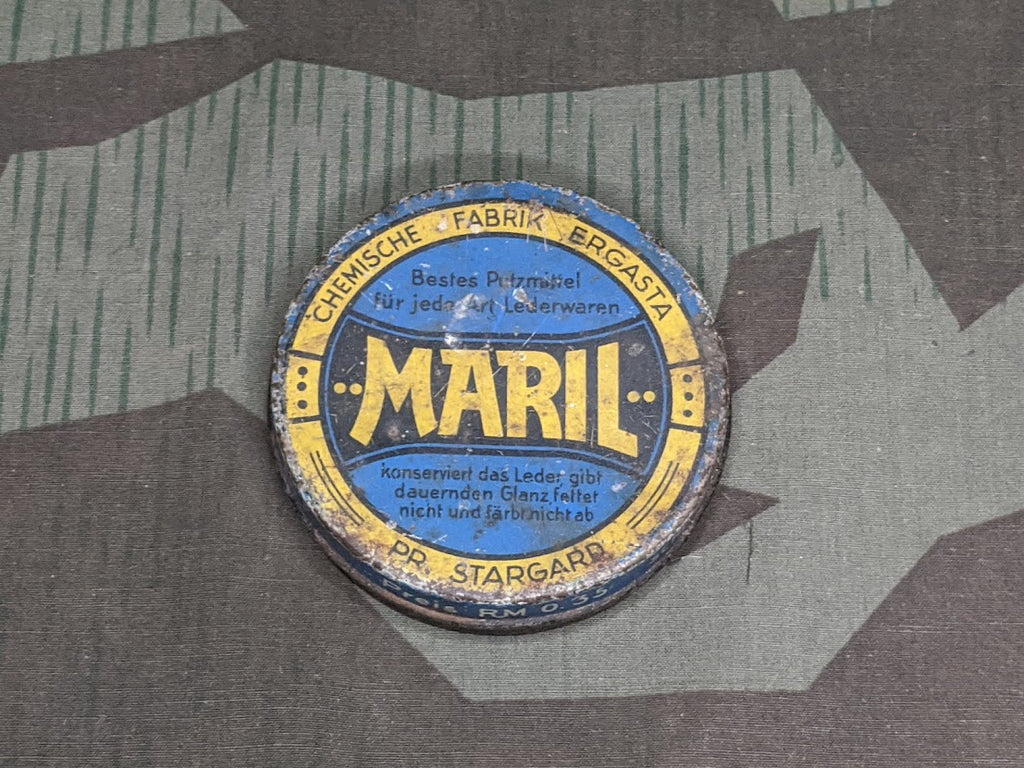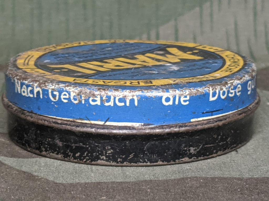Original German leather cleaning or saddle soap container. Its a bit on the worn/rusty side. This would be a very neat tin to clean up and fill with something new for events, maybe some snow seal. - ← Previous Product Next Product →