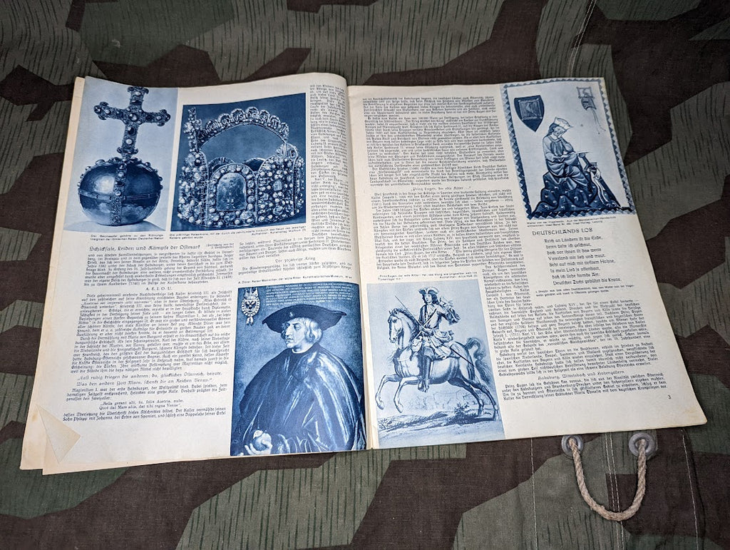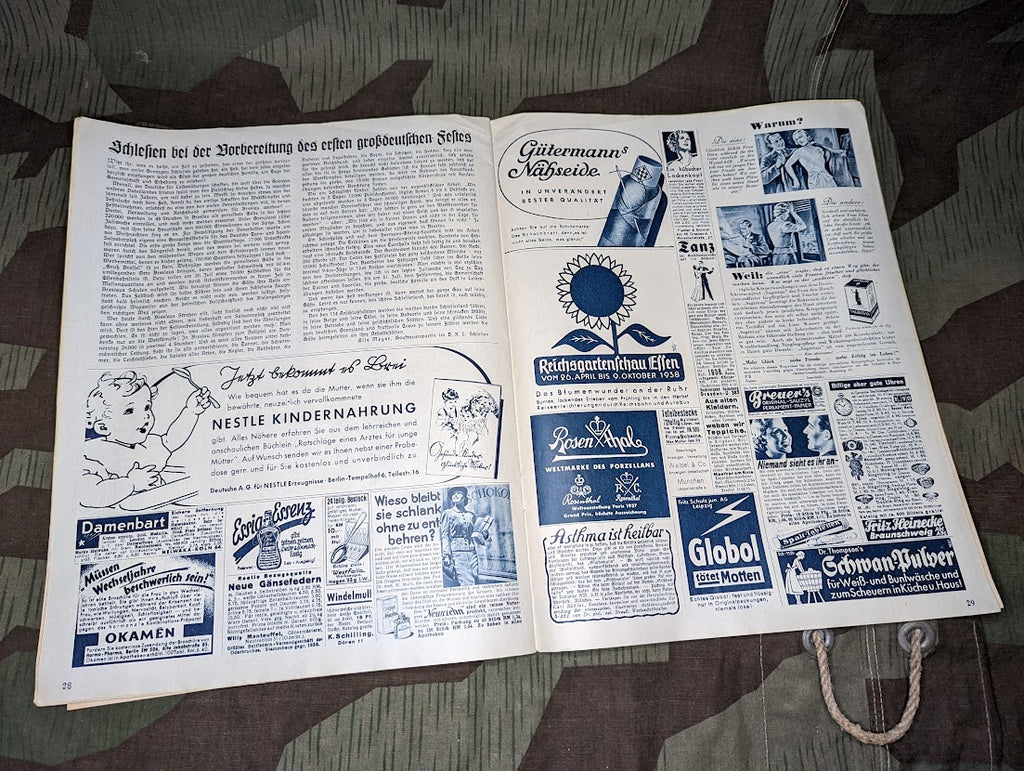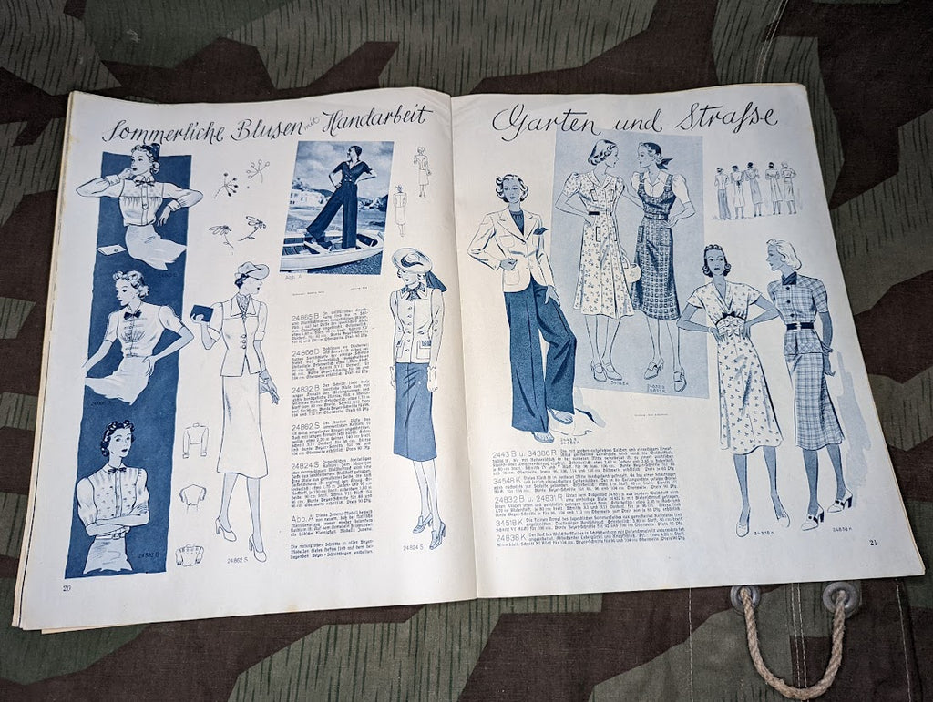 N.S. Frauen Warte women's magazine. A very interesting glimpse into civilian life in the third reich. Nice magazine in rather good condition. It is actually quite thick compared with many other magazines of the era with rather a lot of diverse content from political stuff which should be expected from a National Socialist party official publication, to clothing pattern ideas, entertainment, advertisements, and article on cooking and baking. This is also another leaflet inside. - ← Previous Product Next Product →