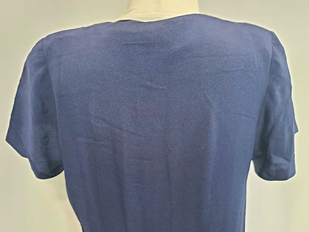 Navy Blue Rayon Dress with Lace Trim and Pleats