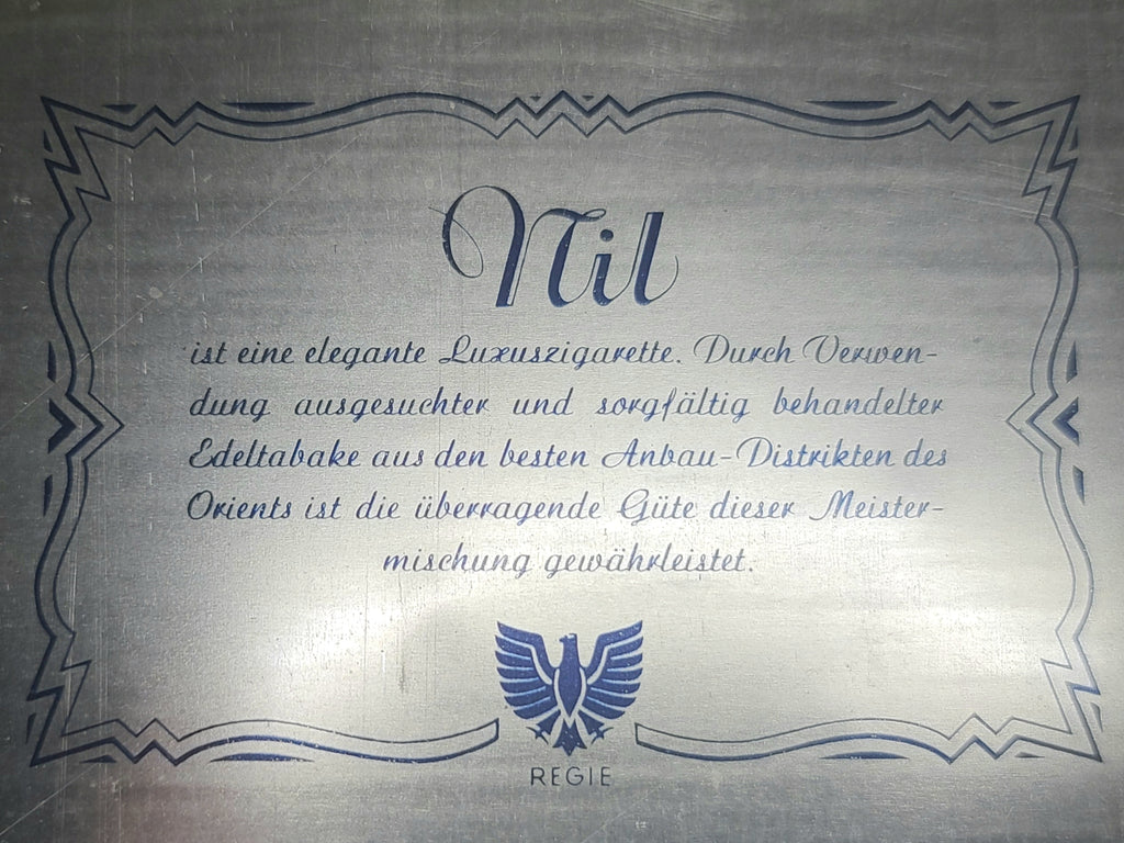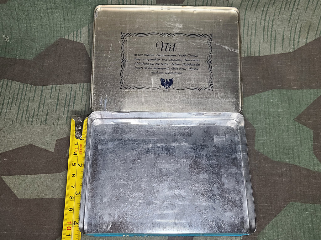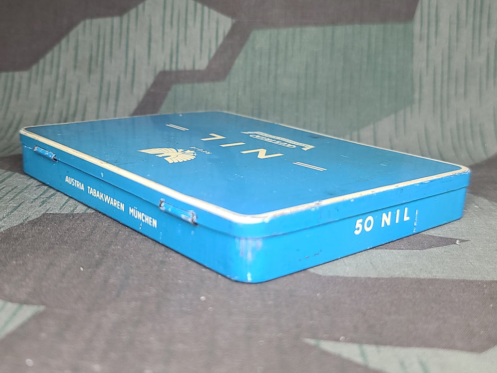 Nice 50 cigarette tin from NIL Austria Zigarettenfabrik München. Good condition with some wear. There are some black marks on the tin, but nothing too detracting.