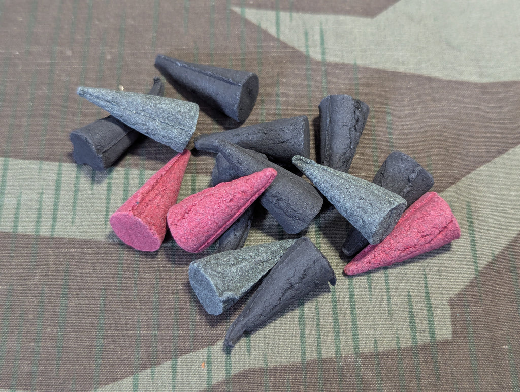 Räuchermännchen are a very old German knick-knack tradition that dates back to around the mid 1800's. They originated in the Erzgebirge, but have spread throughout Germany and are now a staple of German Christmas markets. These were made in the same region where many WHW items were produced. This region was known for many crafts, mostly made from wood. They are essentially a kitschy incense burner, with the smoke coming out his mouth. Never compete with the Germans for cute doo-dads. All of the energy they save on humor goes into this field.