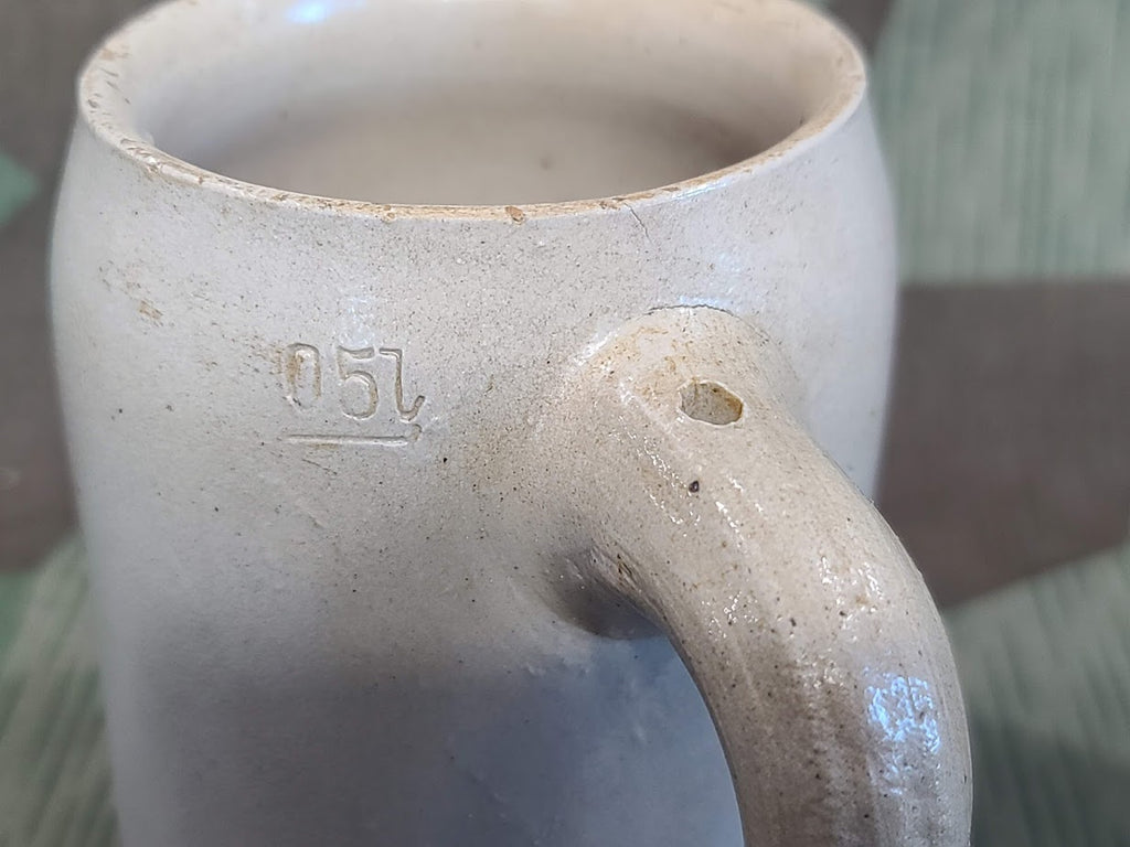 This is a krug, not a stein. Stein is what English speakers and tourists say. In German a stein is a stone, and is not used to describe a beverage container.