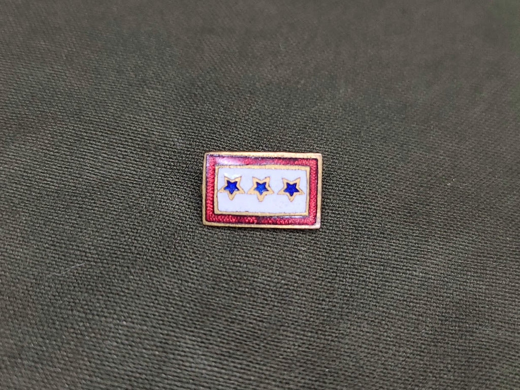 Original WWII small blue star son in service pin for 3 sons. Price is for one pin. Pins are in in good condition with some wear and patina. May have a patent mark. - ← Previous Product Next Product →