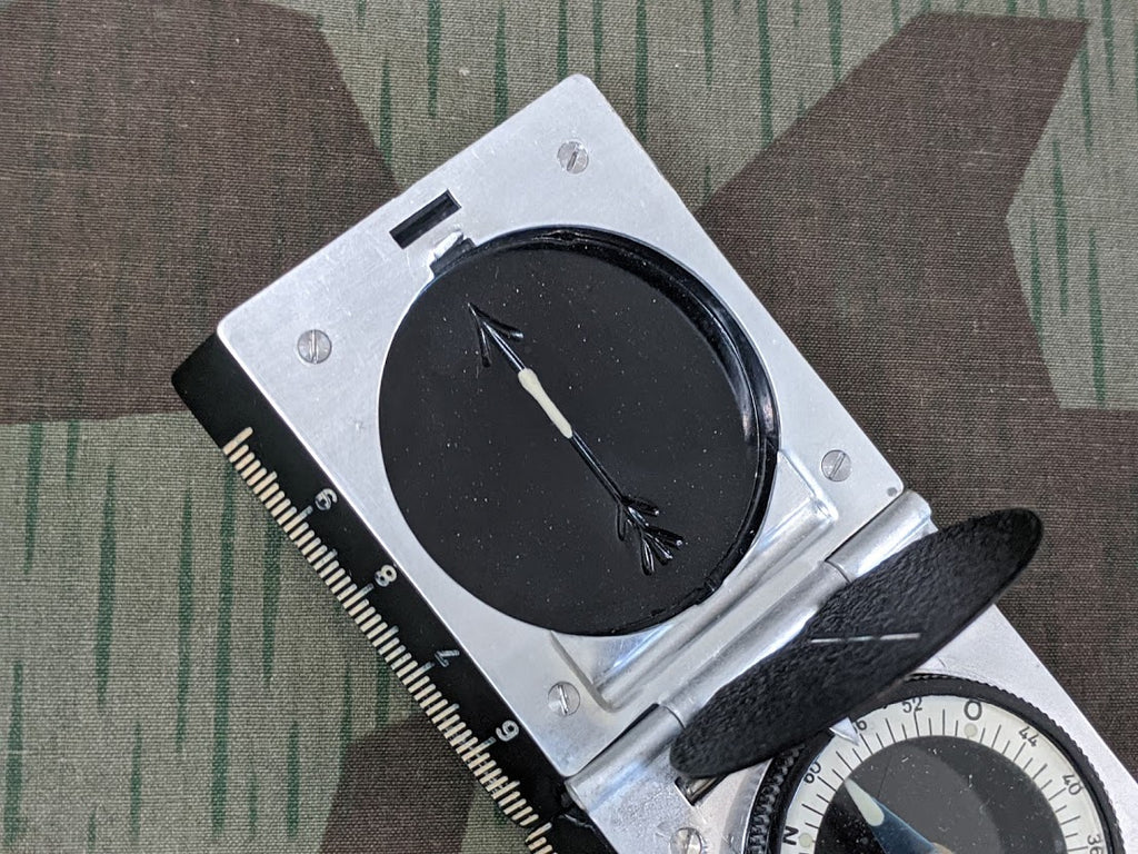 Very nice German compass marked D.R.P. and Touristen-Kompass. These are considered HJ or private purchase items. It is in very good condition and it only really missing the black cord neck strap . The glow in the dark painted arrow has very litle of the original paint left on it. - ← Previous Product Next Product →