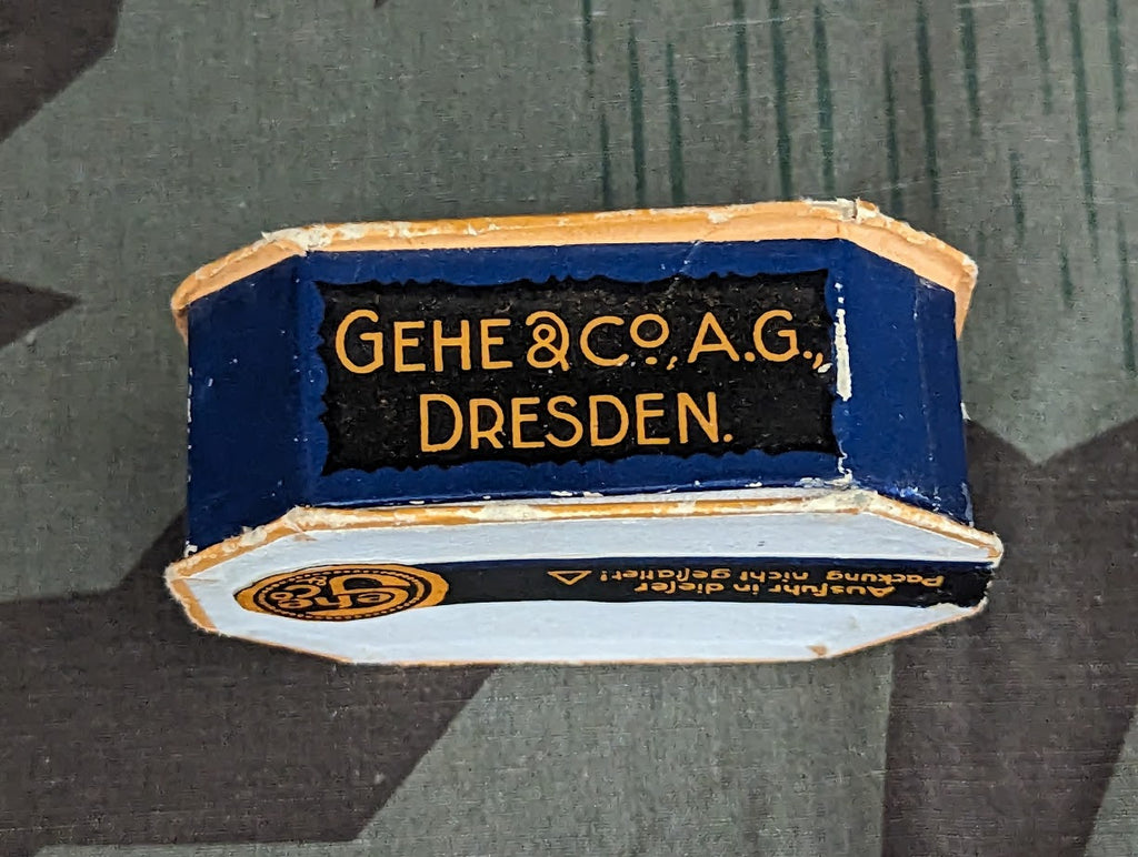Pre-WWII Transannon psychotic disorder medication container from Gehe & Co. made from cardboard. It has some wear, but still pretty nice. Gehe & Co. A.G., Dresden was a pharmaceutical wholesaler. - ← Previous Product Next Product →