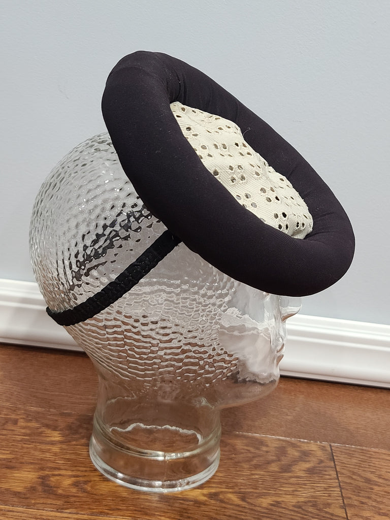 Vintage 1940s turban style tilt hat. It fairly good condition with light wear. The headband is safety pinned in place on one side.