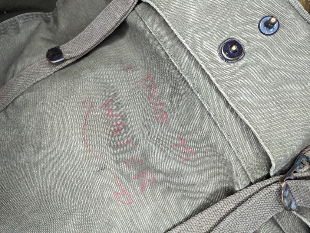Original US 5 gallon water bladder, I could not find a date but it is the same type as WWII I would assume its was made around 1945. It was clearly used by the Boy Scouts for a bit, as they wrote their troop number on it. Selling as-is; no attempt has been made to remove the writing. - ← Previous Product Next Product →