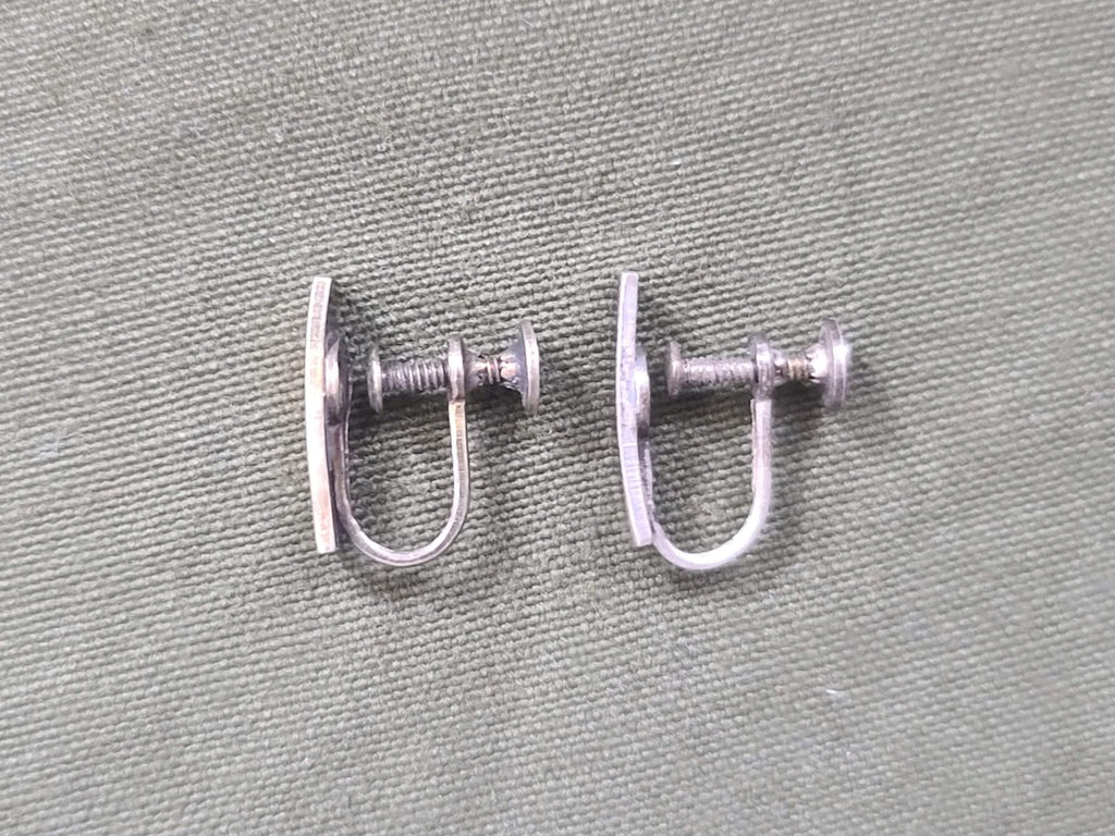 Vintage WWII US Army sweetheart lieutenant rank screwback earrings. They show some wear and tarnishing to the finish. No markings. - ← Previous Product Next Product →