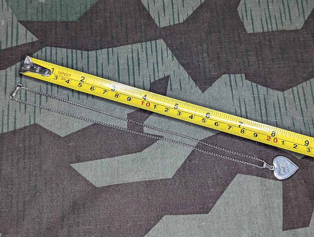 Vintage 1940s German Vergiß Mich Nicht ("forget me not") silver heart necklace. The charm is marked 835 KH. The chain is unmarked. Overall good condition with light wear. - ← Previous Product Next Product →