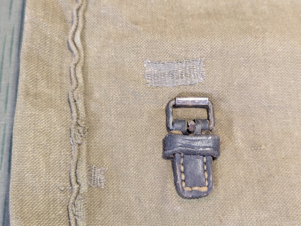 Original Wehrmacht clothing bag in decent condition. It is a bit salty and worn, but still usable. It has some repairs.