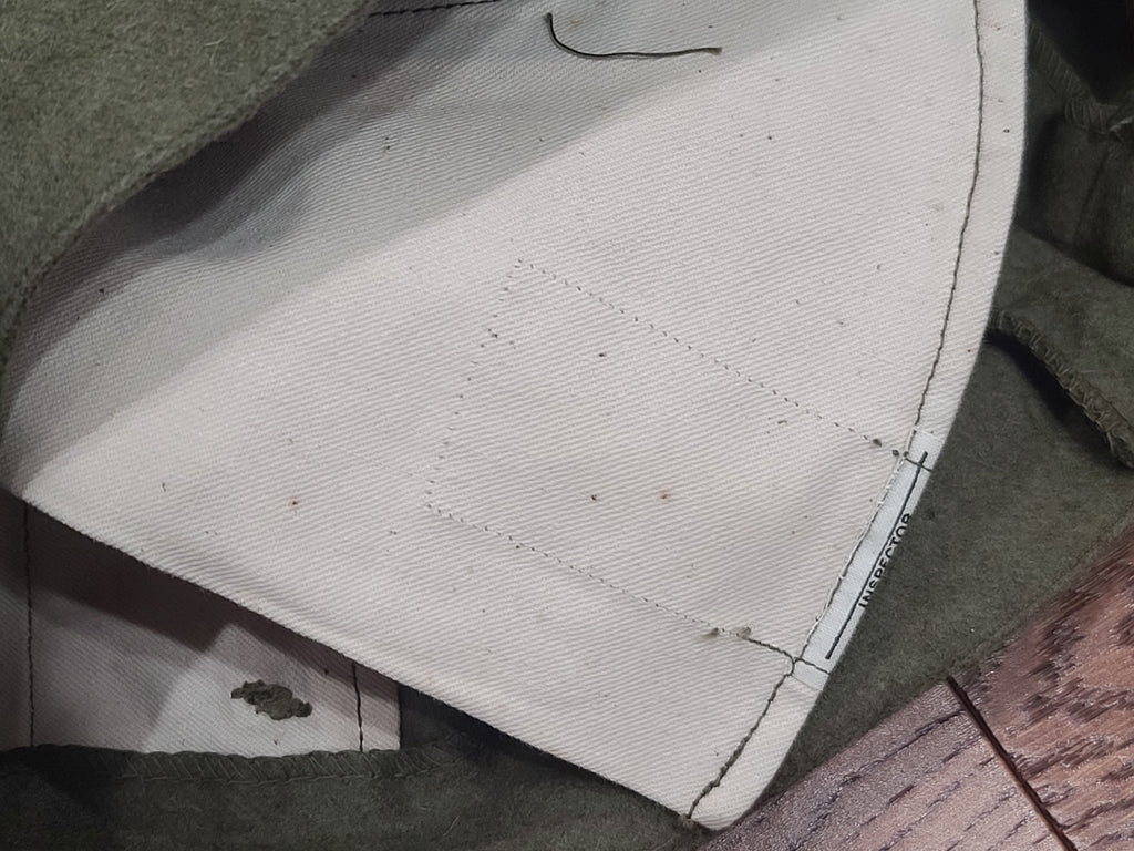 Inseam - 28"Side button closure; pocket on the opposite side. The trouser liner is in AS-IS condition. It doesn't seem to have been worn much, but has been improperly stored, so there are flaws. There are several areas of wear to the material and a few spots of fading. Inside label on pocket is missing.