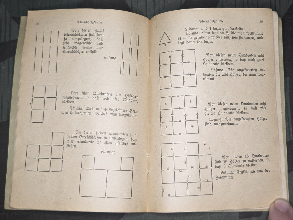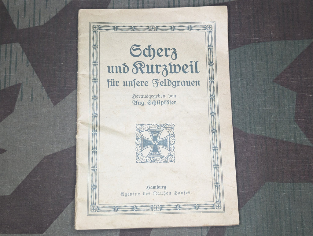 Original WWI joke and entertainment book for soldiers. Scherz und Kurzweil für unsure Feldgrauen. It has a lot of puzzles and games. Perfect thing to while away time in your bunker. Fairly good condition. I did not see a date.