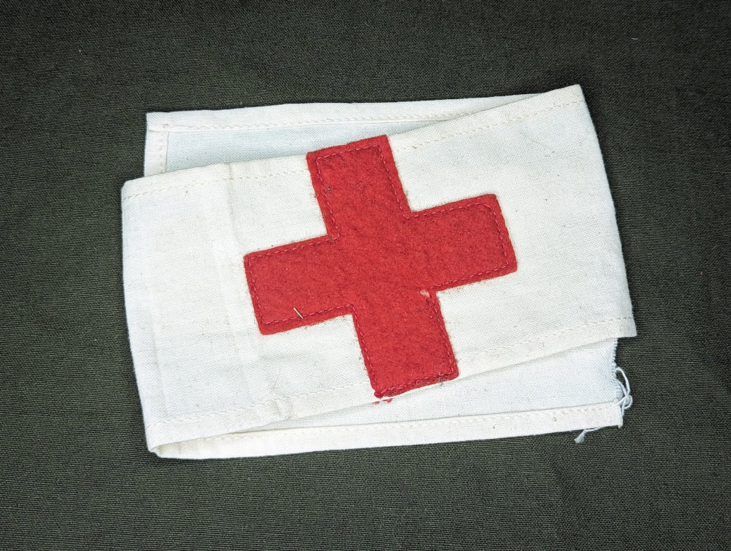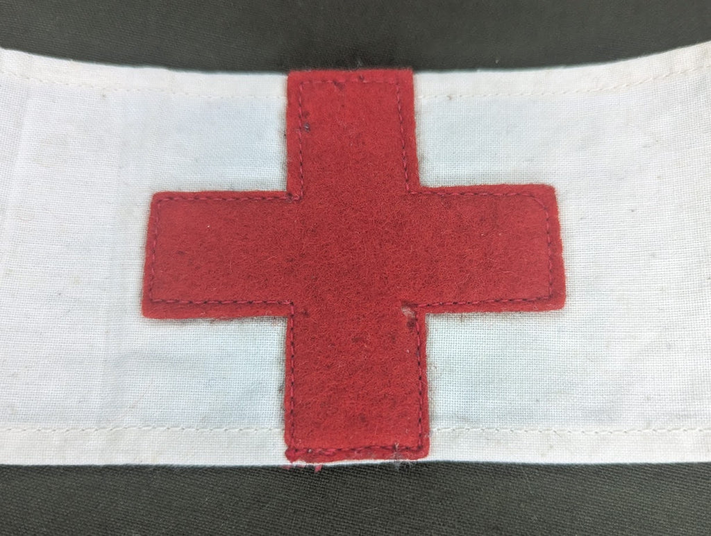 Original WWI AEF (American Expeditionary Force) and later US Army (when they entered the war) medical red cross armband / brassard. I have seen these listed combat medic or officer's medical armband, however it appears to have much more broad usage.