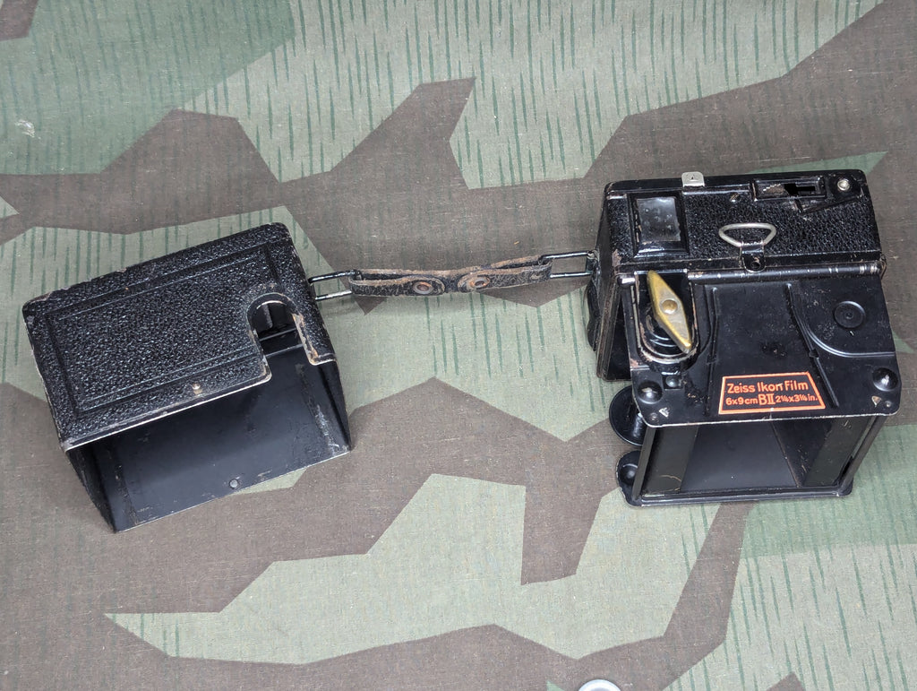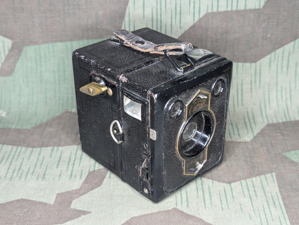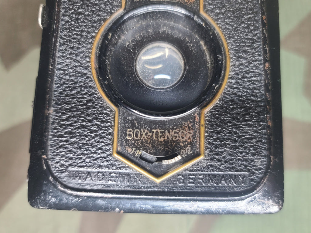 Nice little original German Zeiss Ikon Box Tengor camera in working order. Marked "Made in Germany". Around the lens, it is marked Goerz Frontar DRP. The view finders are quite clear and usable.
