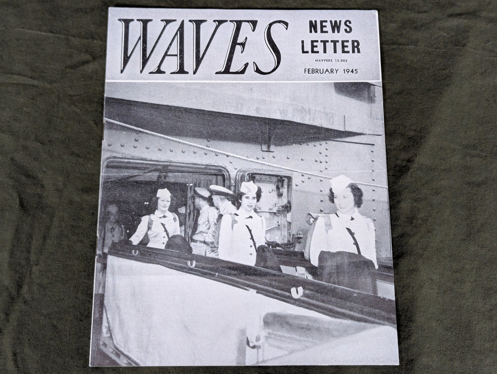 Vintage women's US Navy WAVES Newsletter from February 1945. Fairly good condition with some wear. There are some fold lines where it was folded in half. Some nice pictures of WAVES.