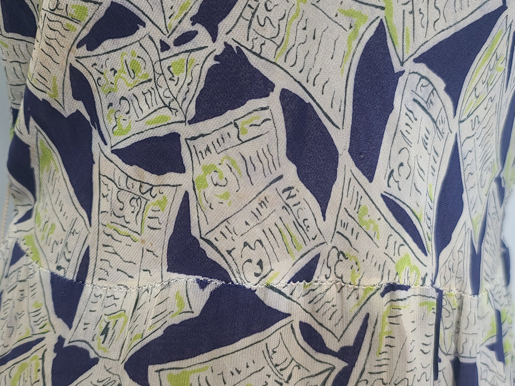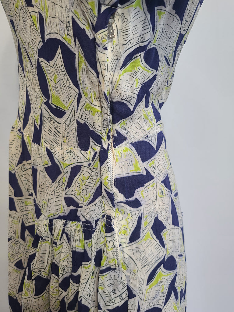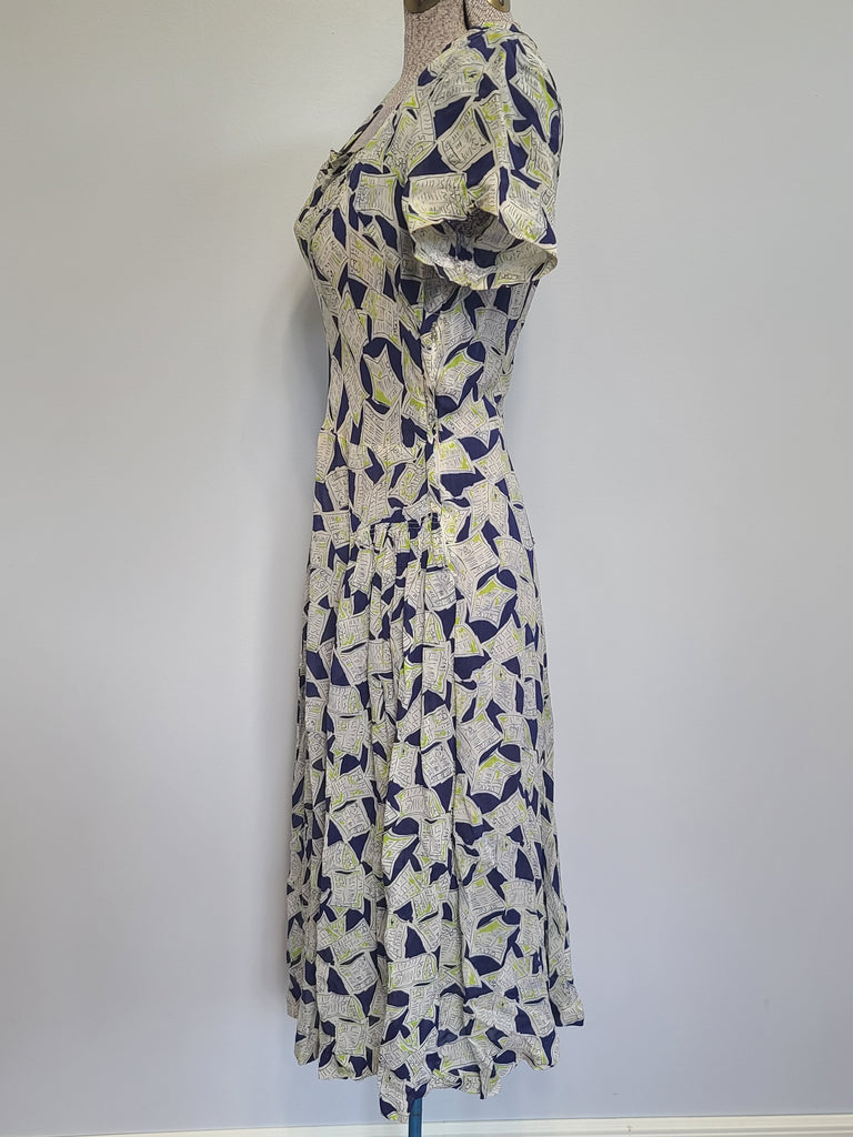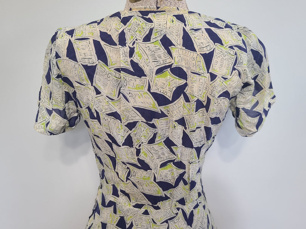 Vintage 1940s newspaper novelty print dress.