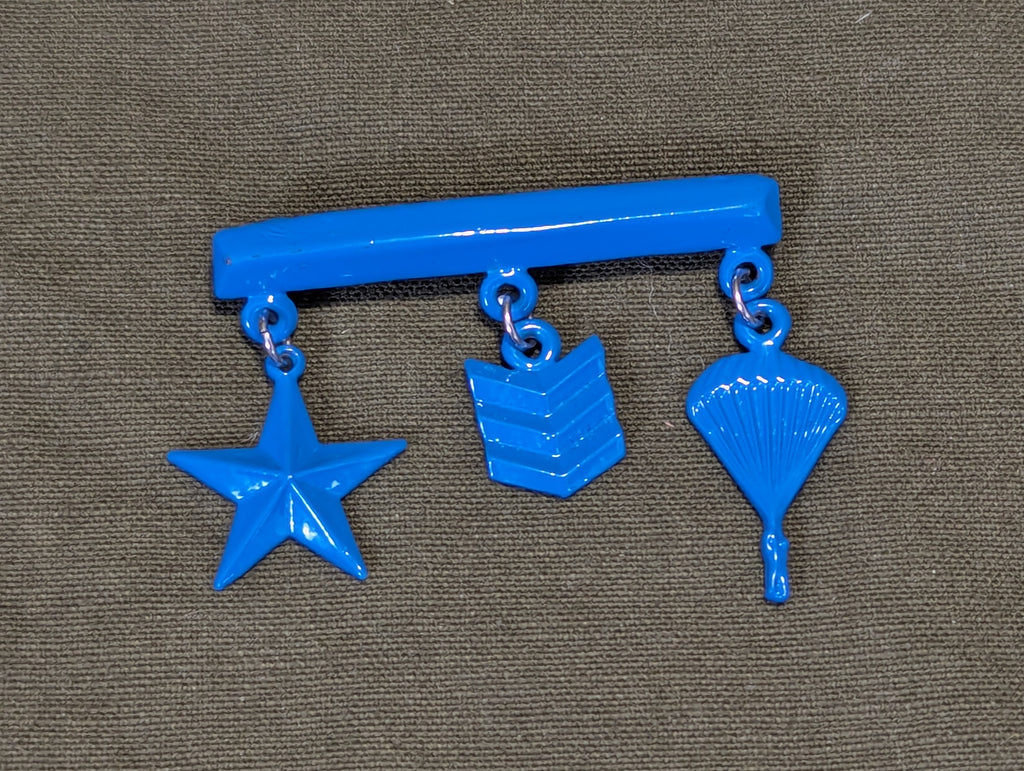 Vintage sweetheart blue metal paratrooper, star and rank charm pin. Good condition.