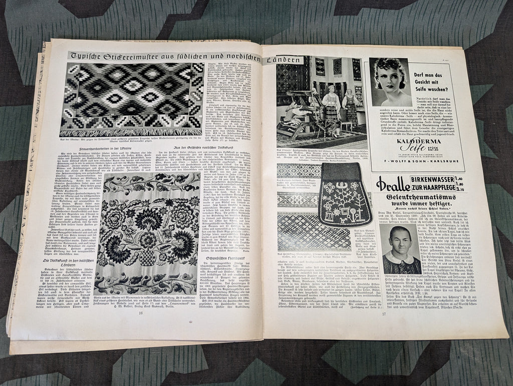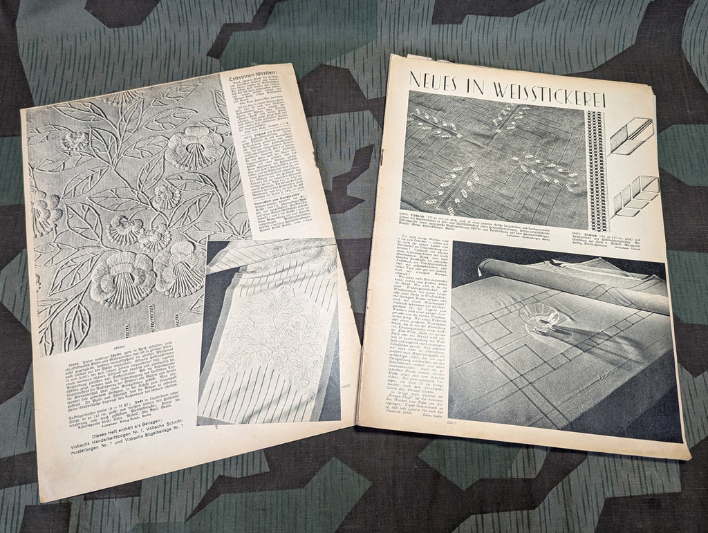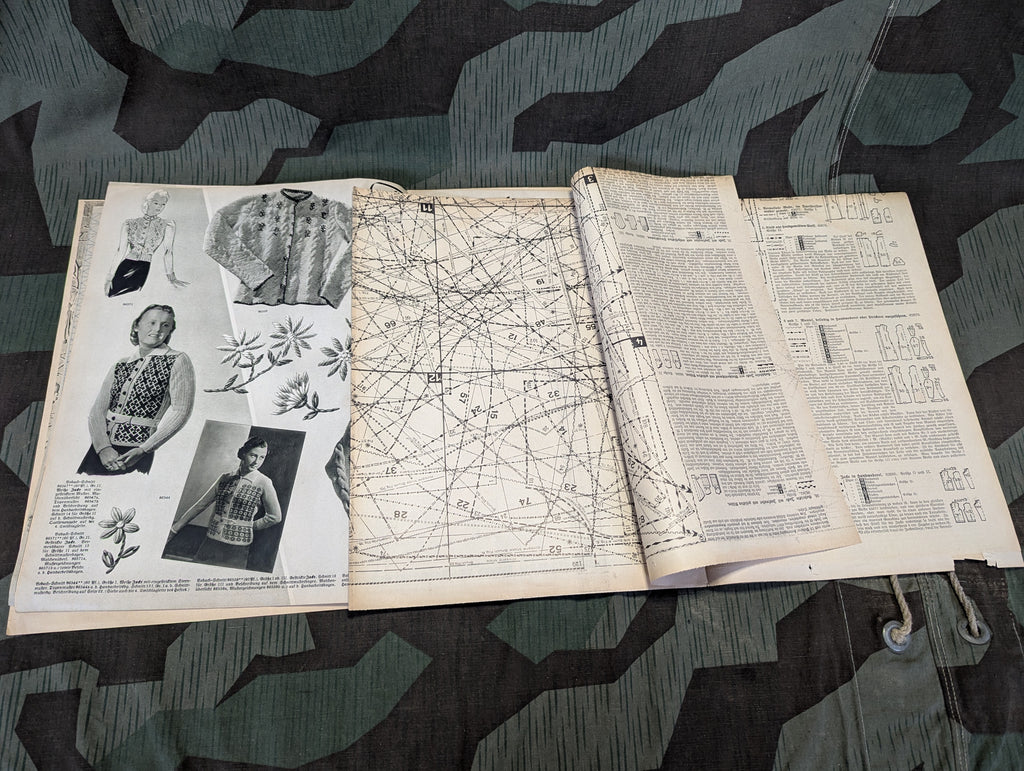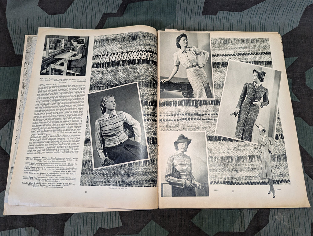 Original Frauen Fleiss women's knitting and hand work magazine with patterns. 1938/1939 The cover is split directly down the spine at the staple line and is loose but at least it is all there. Very interesting sweaters.