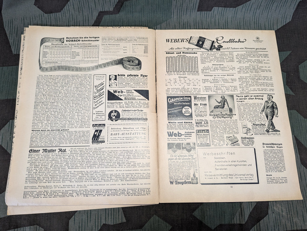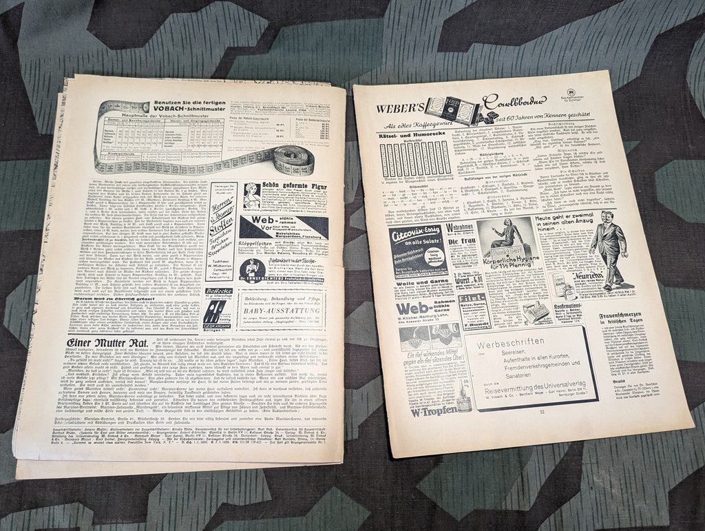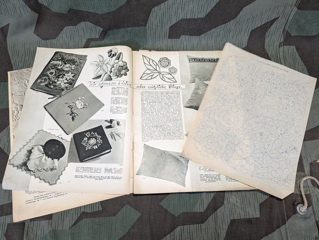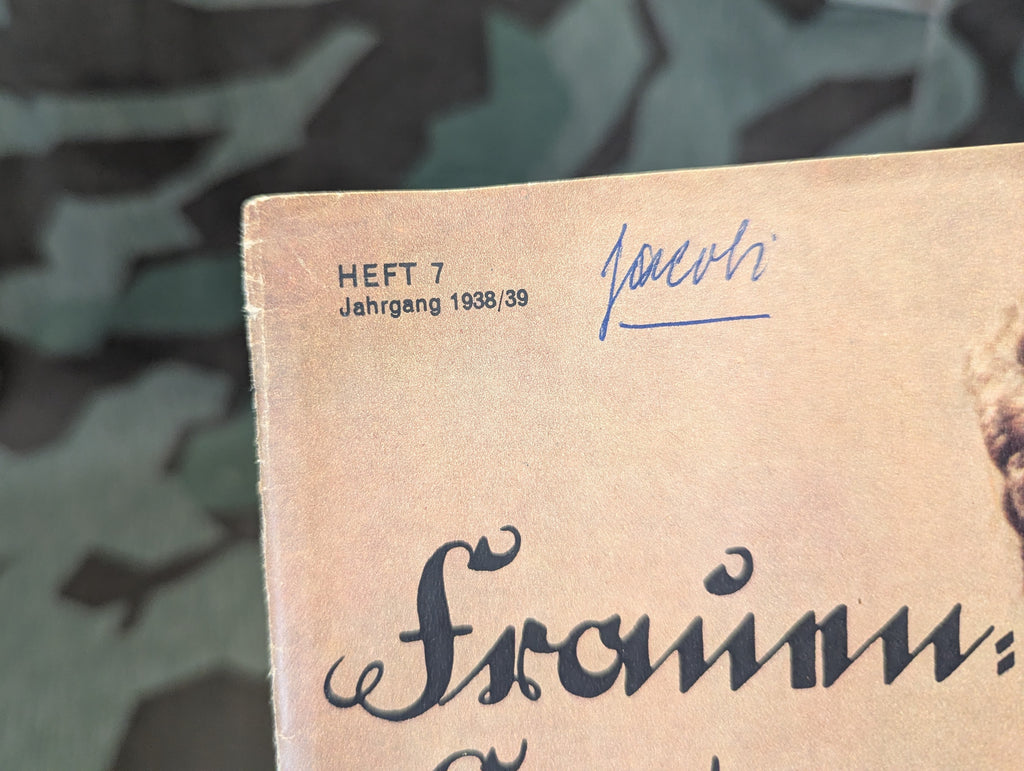 Original Frauen Fleiss women's knitting and hand work magazine with patterns. 1938/1939 The cover is split directly down the spine at the staple line and is loose but at least it is all there. Very interesting sweaters.