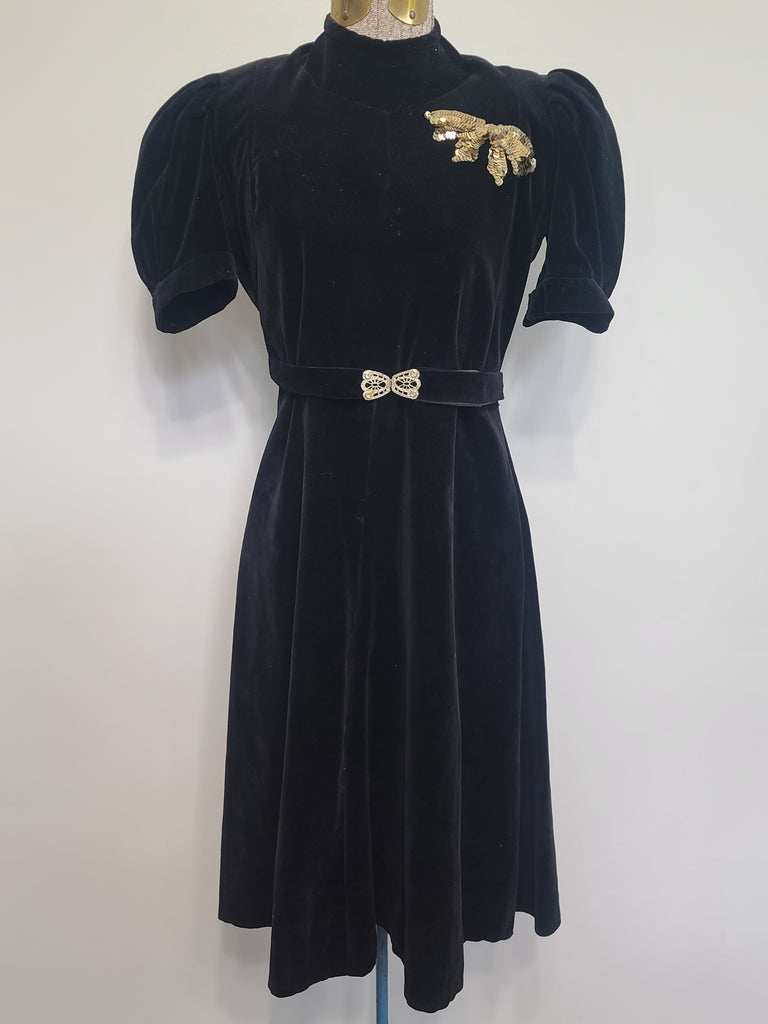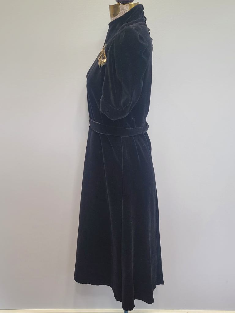 Vintage 1930s / 1940s German black velvet dress.
