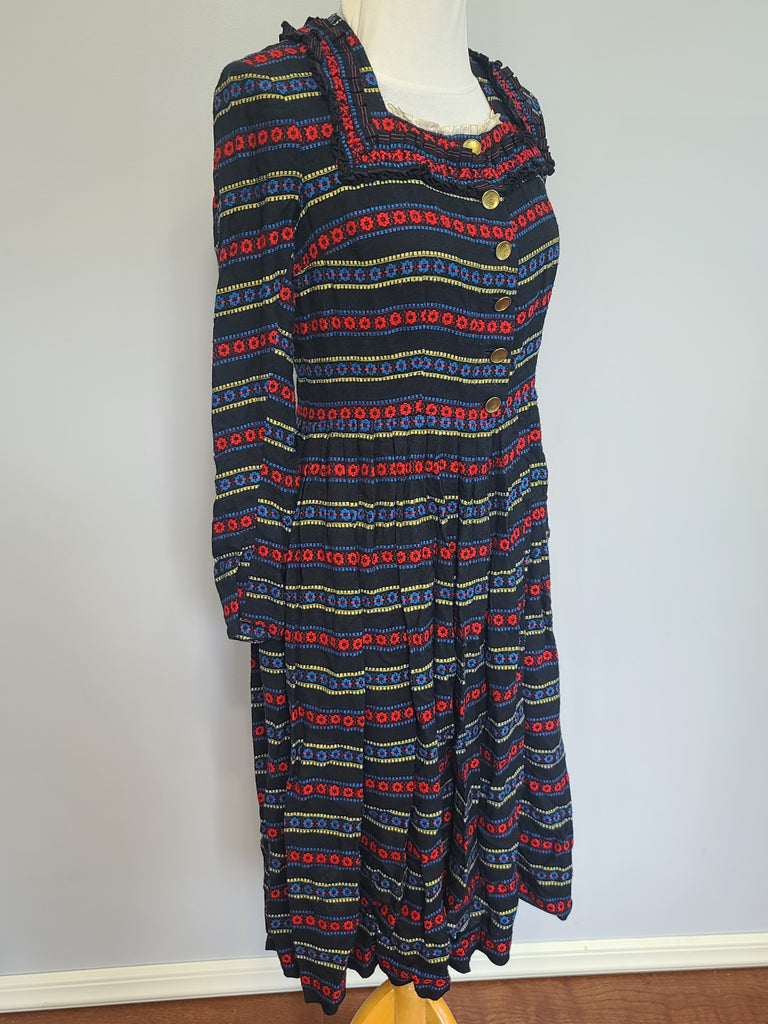 • German Long Sleeve Stripe Print Dirndl Dress <br> (B-36" W-30")