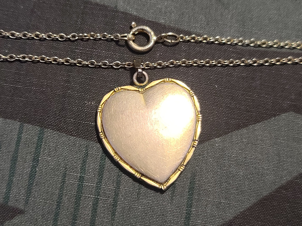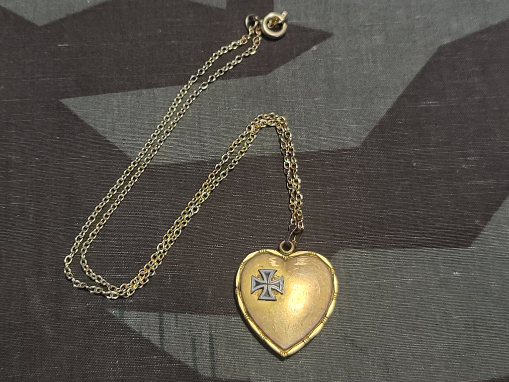 Vintage German iron cross sweetheart necklace. It is a heart charm NOT a locket (it looks like it would be, but its not). It is in decent condition with some wear. I did not see any maker marks.