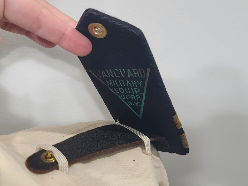 Nice, hard to find set. Navy Nurse and Sacony tailor labels (the Navy Nurse label is loose). The shoulder boards snap in place (the snap is not tight, it doesn't seem to come off of its own, but is also not hard to unsnap). The rank is Lieutenant, Assistant Superintendent. The jacket is named to J. Risedorf; the skirt is not named.
