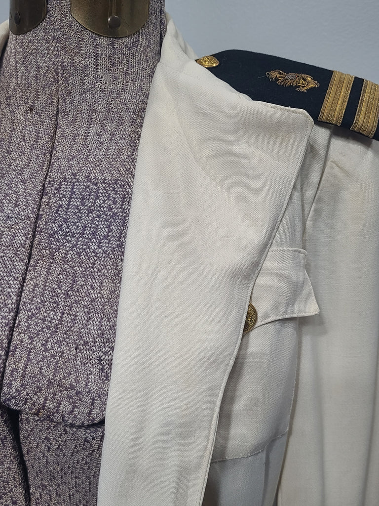 Vintage WWII white Navy Nurse Corps (NNC) uniform set, jacket and skirt.