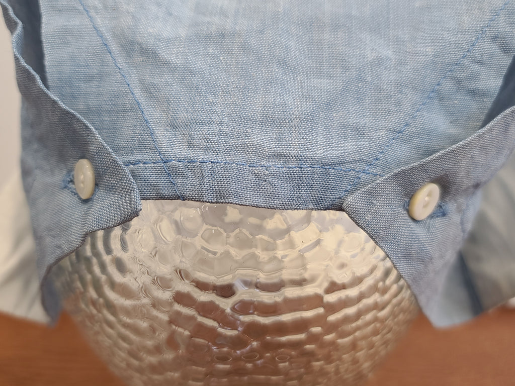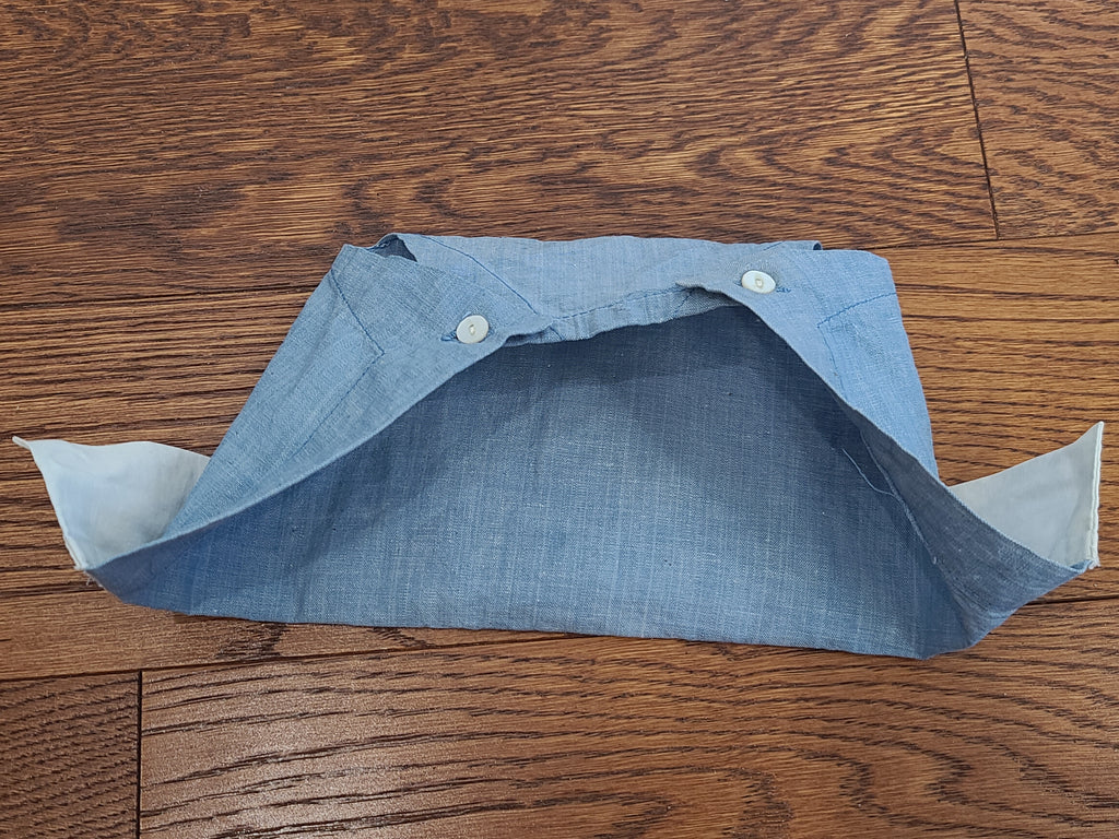 Original vintage WWII nurse's aide coif hat. Small American Red Cross / Civilian Defense patch on the front. I would guess it is about a size 21 or 21 1/2. There is some yellow staining on the white near the patch. Two buttons in the back. a few black specks.