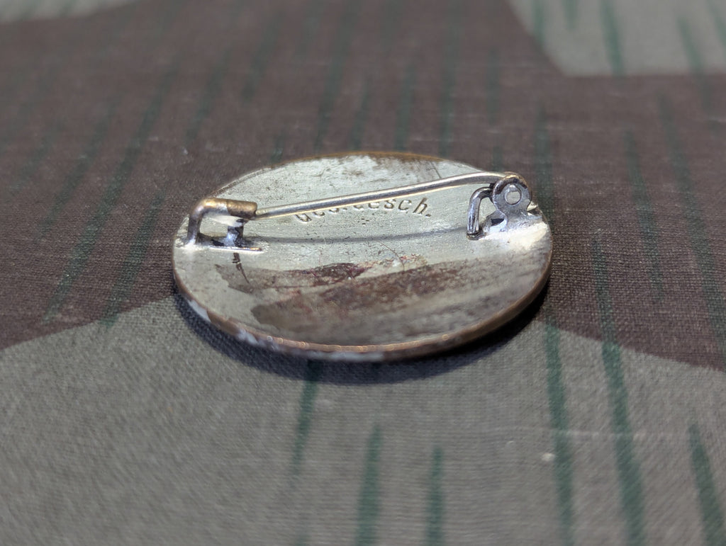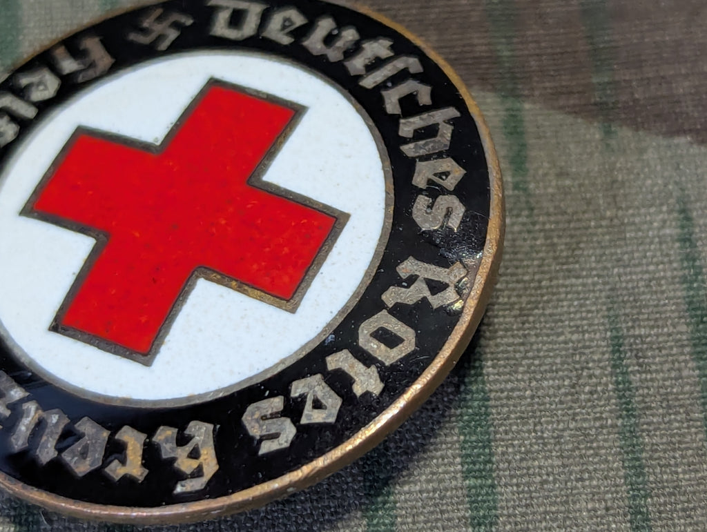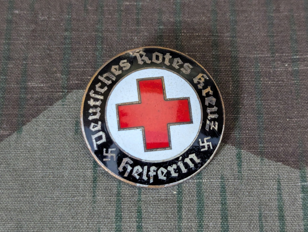 Original DRK Deutsches Rotes Kreuz enameled Helferin brooch. There is a small chip in the black enamel and the silver finish is partially worn in areas. No maker marking. It is only marked Ges. Gesch.