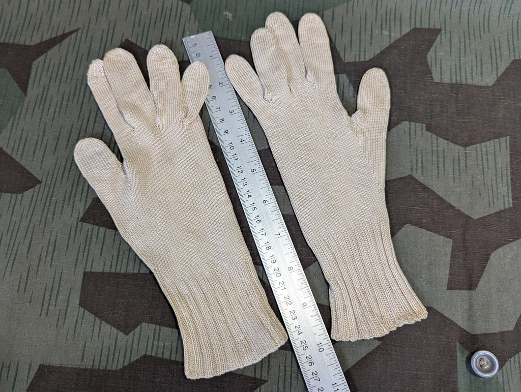 Vintage German small knit gloves. Nice slinky soft material. I am not sure what exactly it is, I believe it is a synthetic blend. I see it a lot on German made items from the 1930s and 1940s and a bit into the early 1950s, not much on things made in the US. Fairly good condition, they don't look to have been worn much. Small size, probably for a woman.