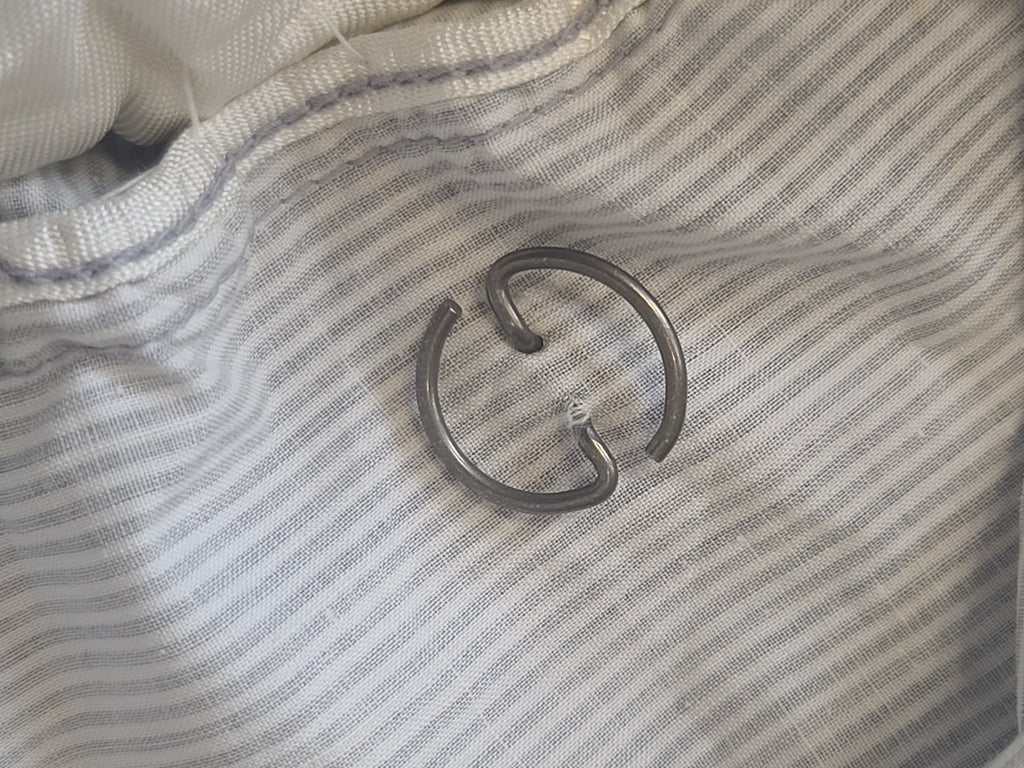 This jacket has been laundered and is ready to wear. If you want to clean it again, make sure to remove the buttons or they will rust and stain the jacket.