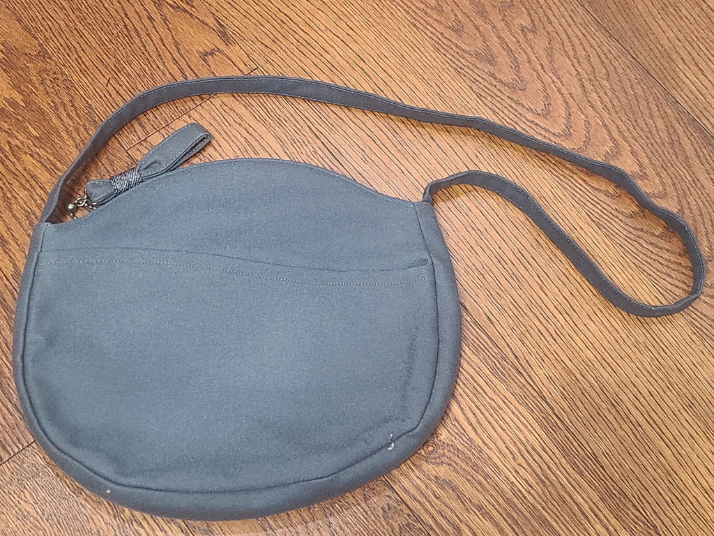 Original WWII gray wool Cadet Nurse purse. Nice label inside. Attached coin purse. Fairly good condition. There are two small moth holes on the bottom. There is some thinning of material of the sides and one spot on the strap. Otherwise nice shape.