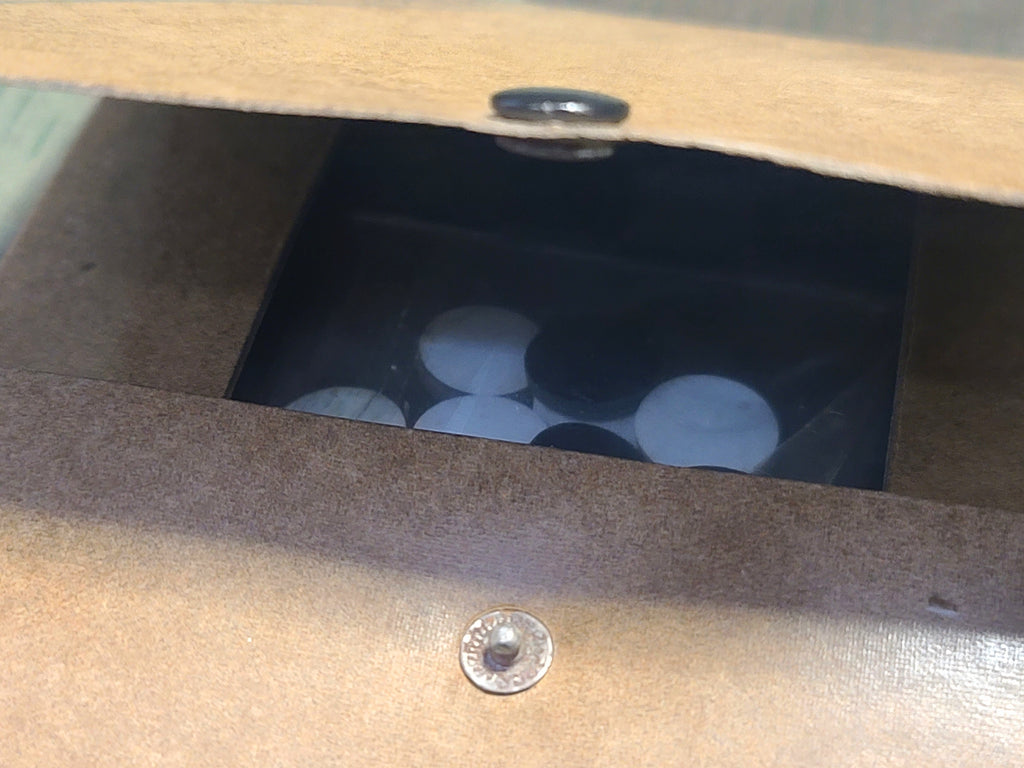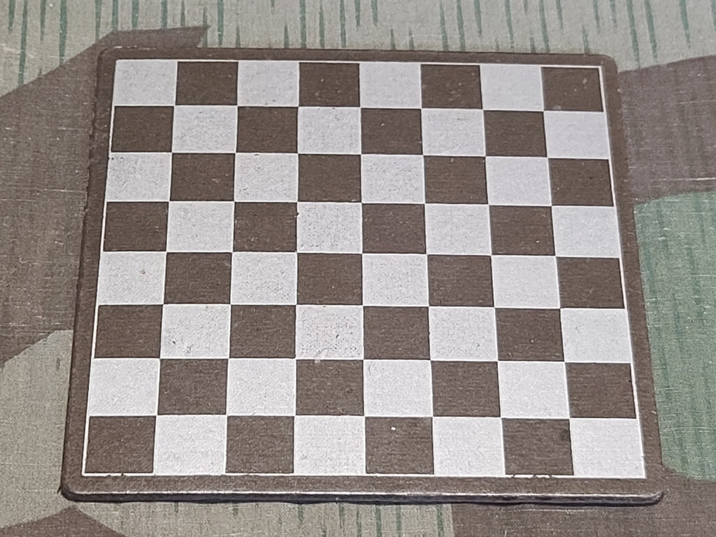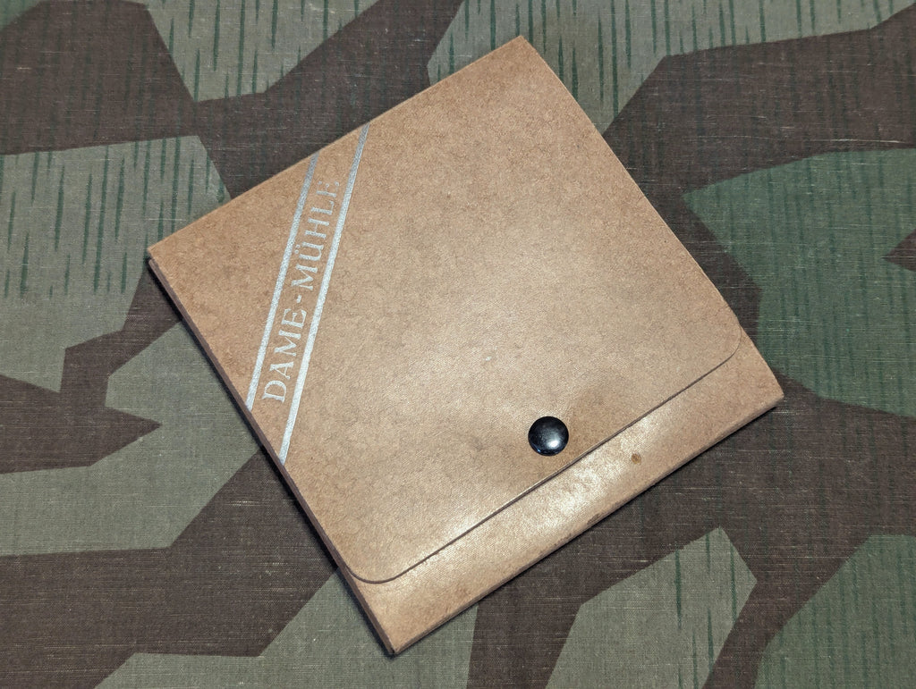 Vintage Dame Mühle (checkers / Nine Men's Morris) travel game. The case snaps together. One side of the board is for checkers (Dame) and the other side is for Mühle (Nine Men's Morris). Fairly good condition with light wear. The snap is a little rusty and this tough to open. If you pull too hard, it could rip the case. The white pieces have a little discoloration. The original price is written in grease pencil on the back. It either has 2 extra black pieces or is missing 2 spare white pieces, I believe there is still the correct number of pieces for each game, but the spare whites are missing.